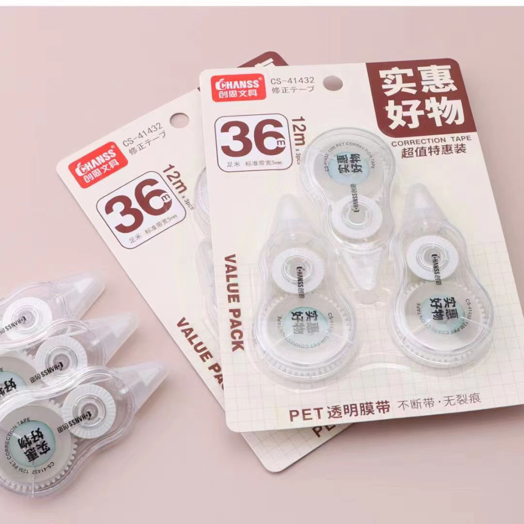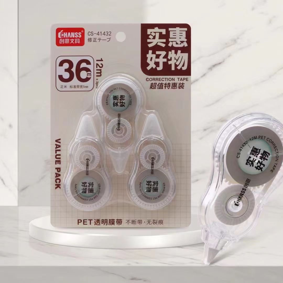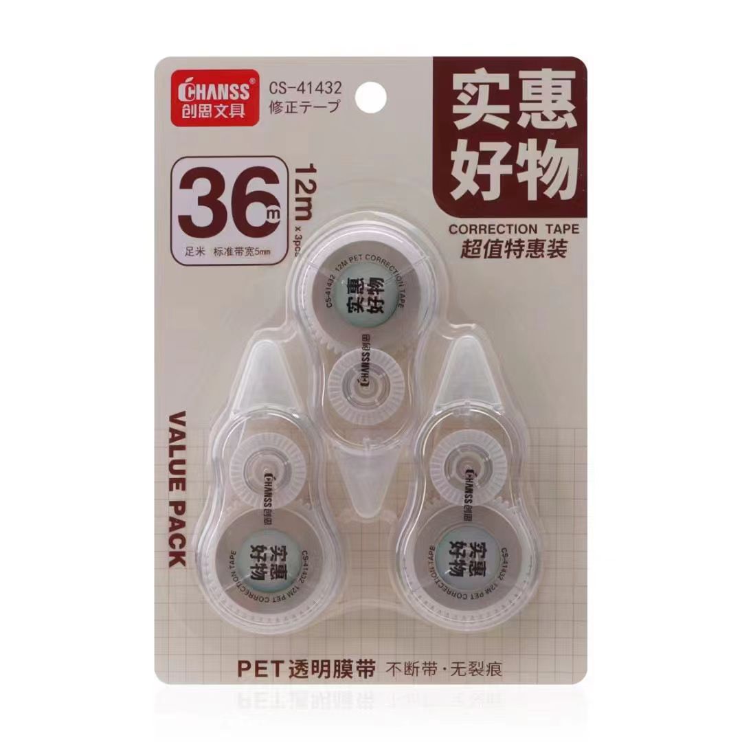 创思修正带经典大容量36m涂改带学生文具简约特惠装耐用不易断带