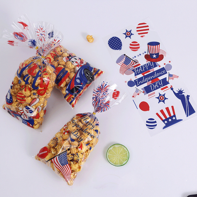 亚马逊美国独立日国旗庆典派对礼品袋透明玻璃纸opp糖果包装袋