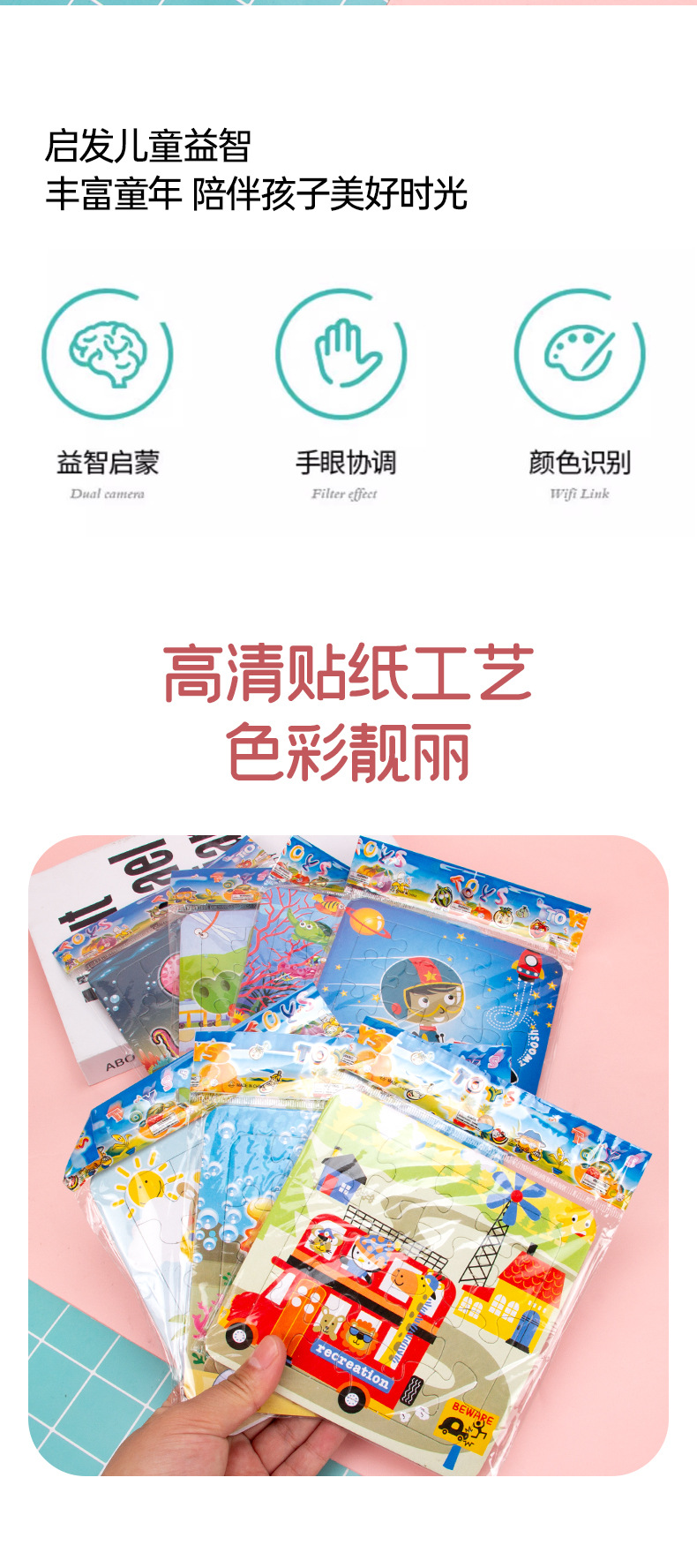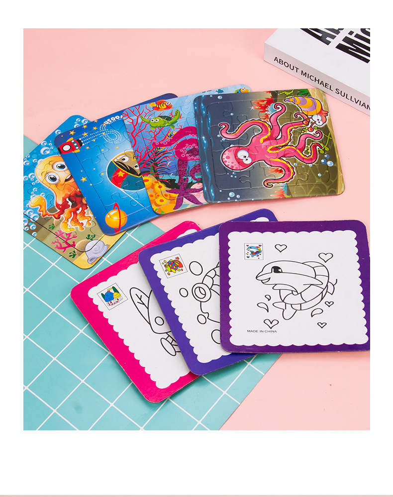 纸质拼图 填色拼图儿童纸质制小拼图宝宝早教益智玩具幼儿卡通拼 English | 投诉