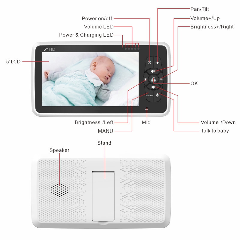 【厂家直销高清云台婴儿看护器婴儿监护器宝宝监视器跨境爆款5寸