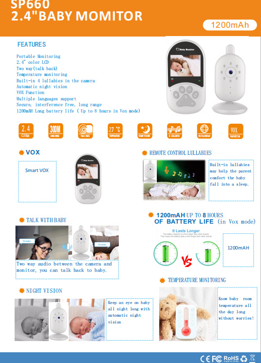 【厂家直销】SP660婴儿看护器婴儿监护器宝宝监视器跨境爆款新品