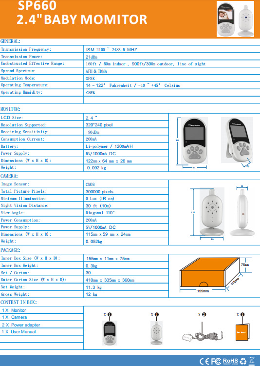 【厂家直销】SP660婴儿看护器婴儿监护器宝宝监视器跨境爆款新品 投诉