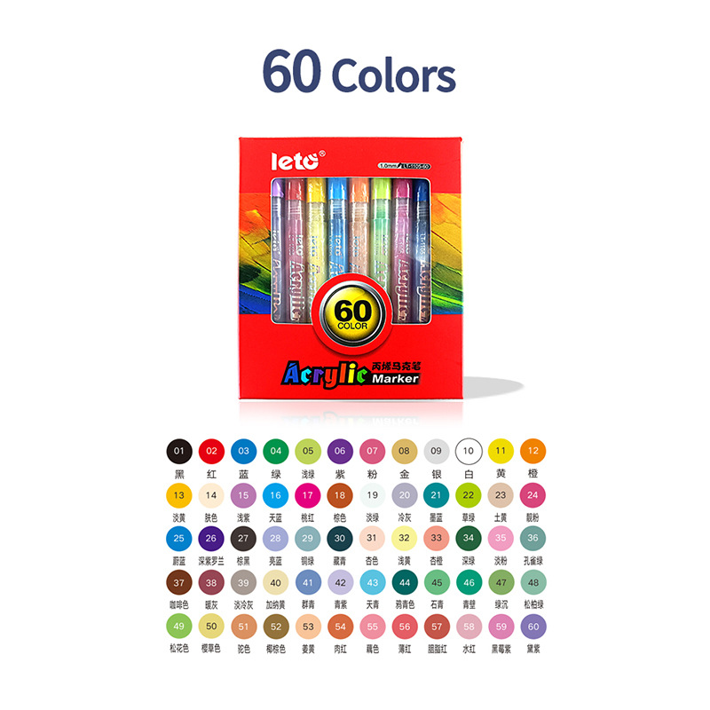 乐途1105丙烯马克笔DIY设计画笔60色水性套装学生美术办公绘画