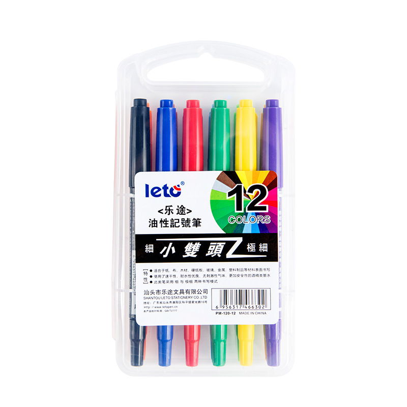 乐途 Leto PM-120-12小双头12色记号笔物流笔学生画笔文具用品
