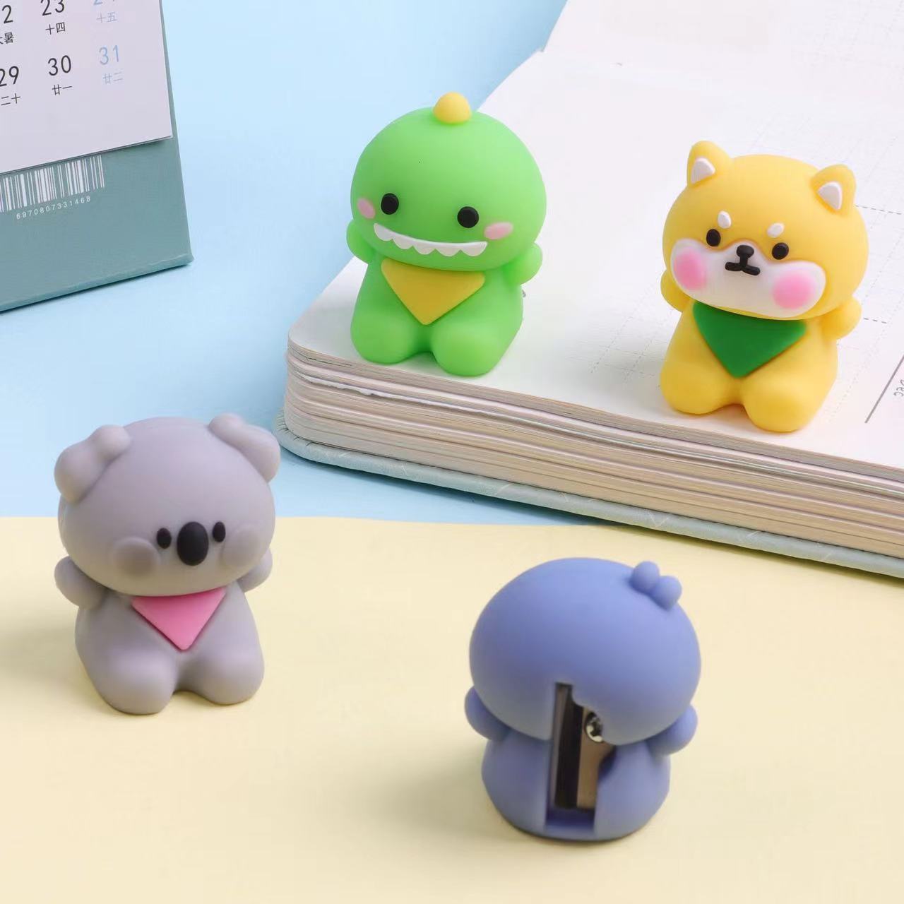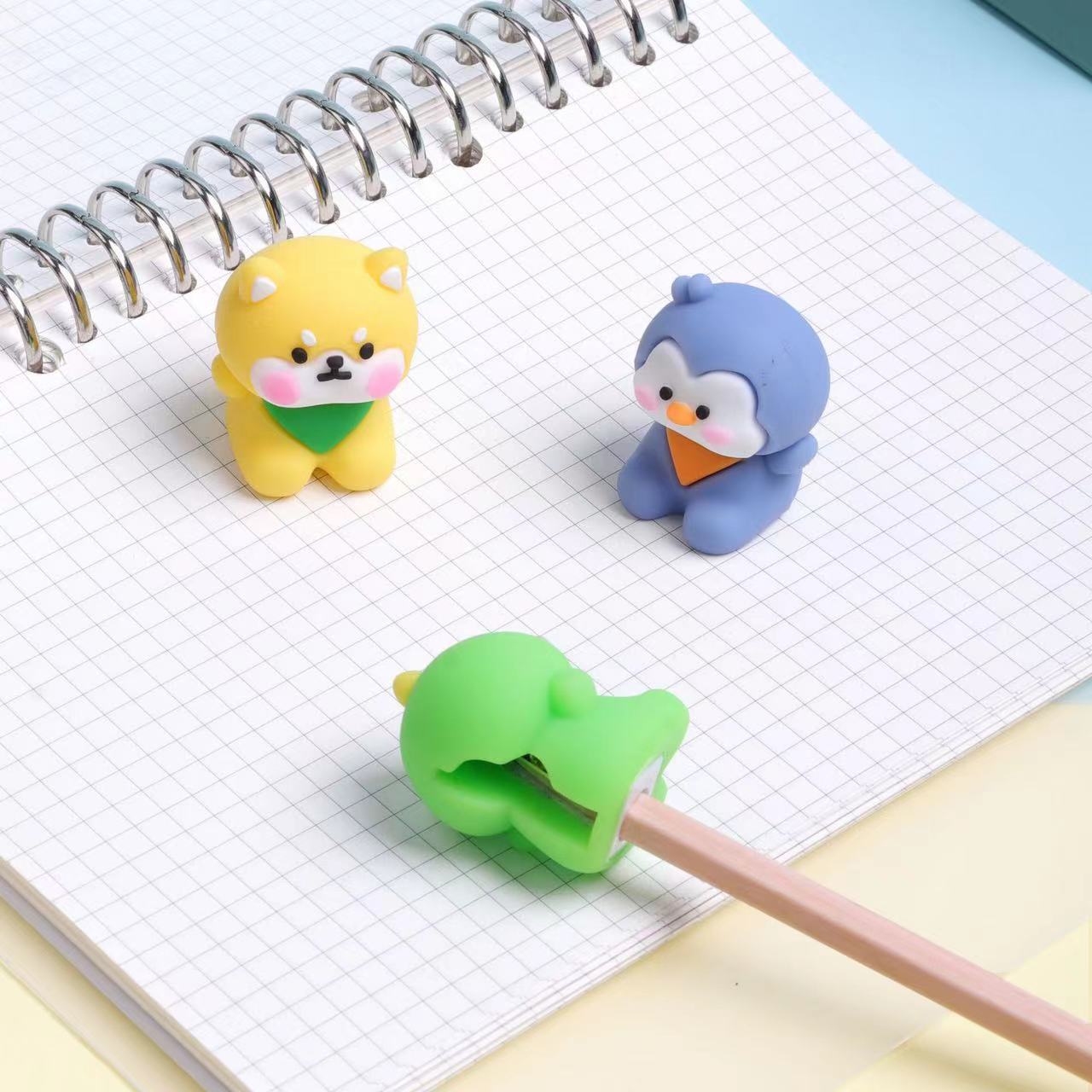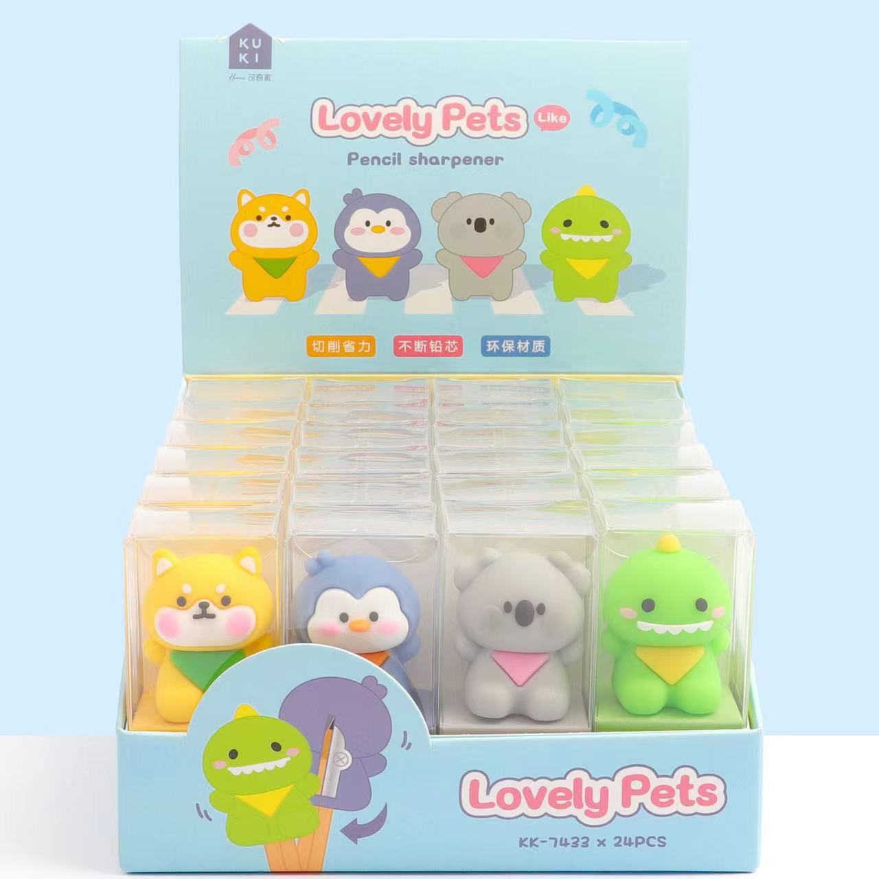可奇7433萌宠乐园笔刨小柴犬卷笔刀企鹅卡拉恐龙削笔器转笔刀