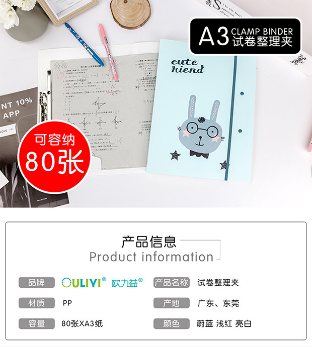 欧力益试卷夹A4 A3初中生试卷分类整理夹A3资料夹垫板夹子松紧带 投诉