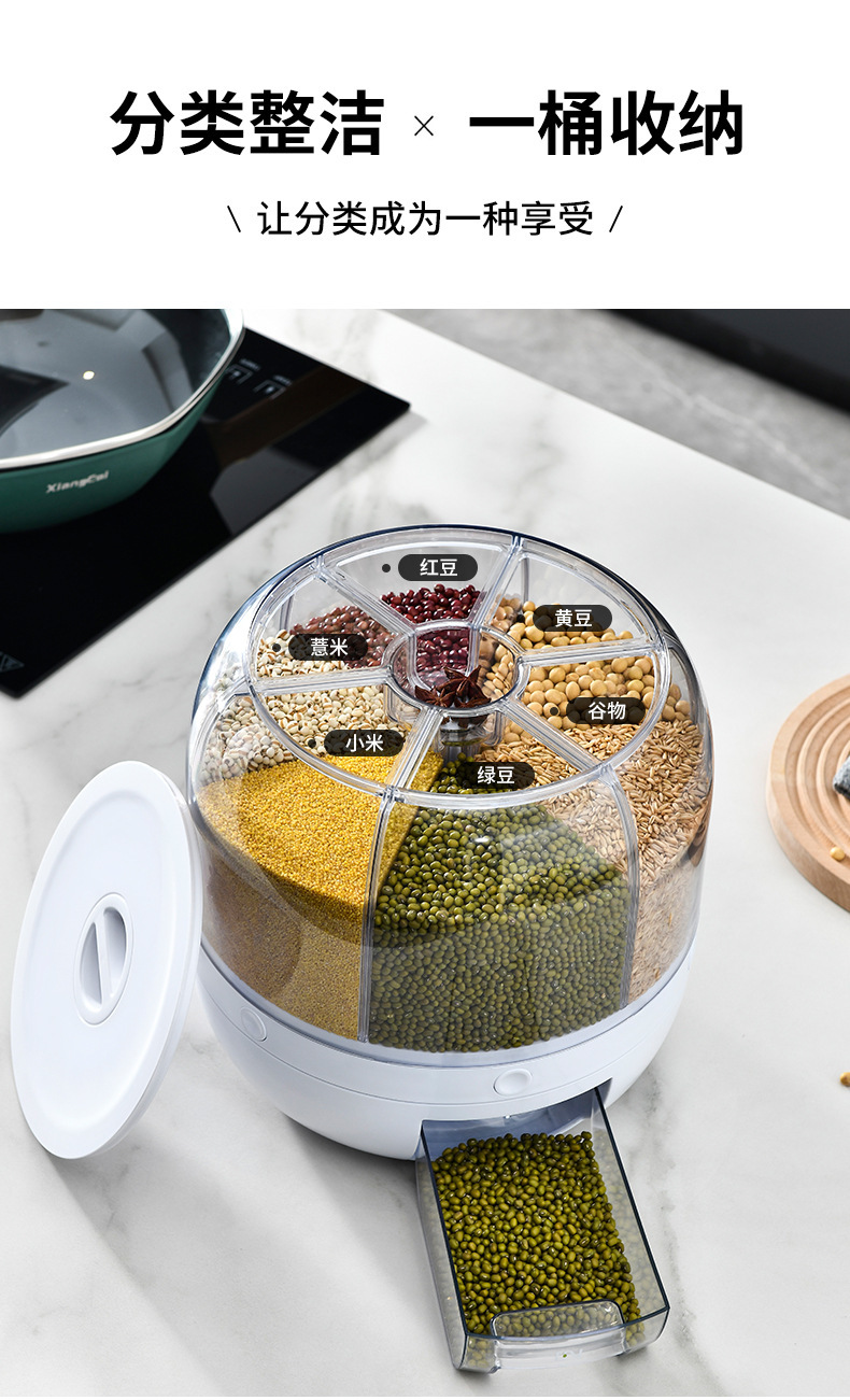 家用六分格五谷杂粮旋转米桶多功能防潮谷物储存罐计量大米收纳箱