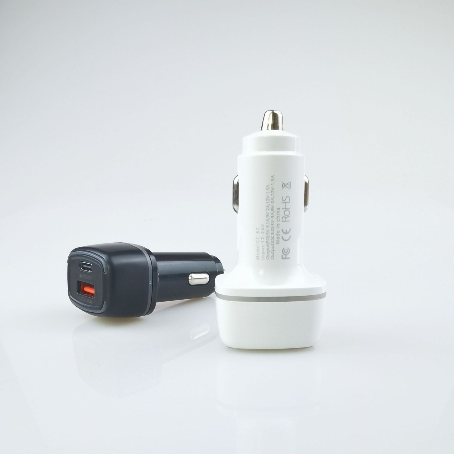 【产品名称】A+C口笑脸发光车充