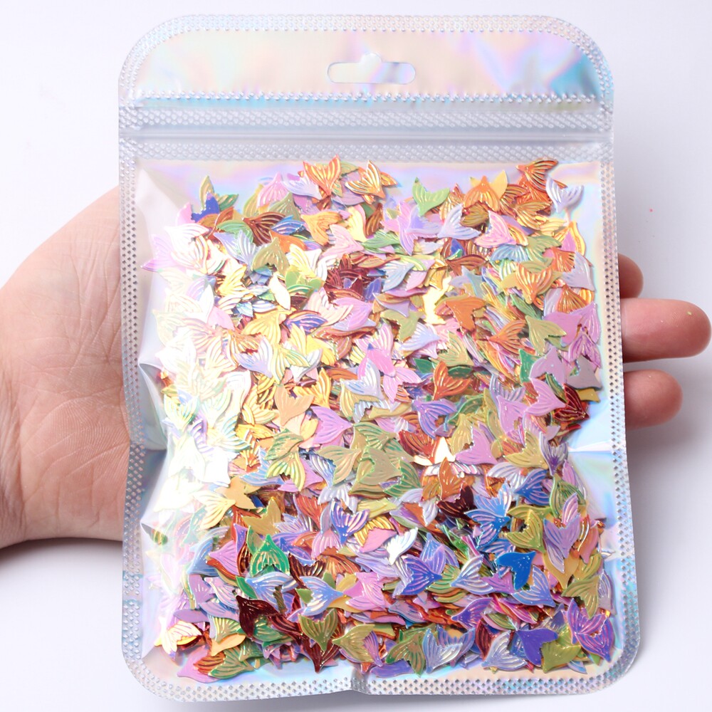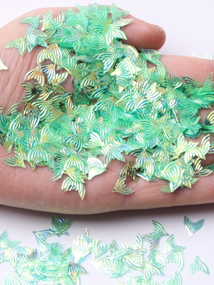 炫彩光的鱼尾亮片,不同光线,不同角度下颜色不同。