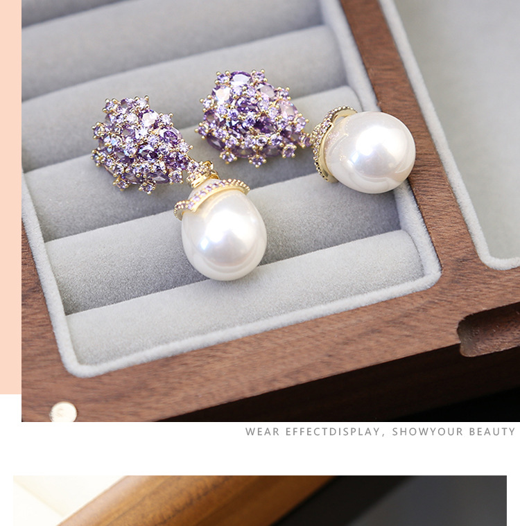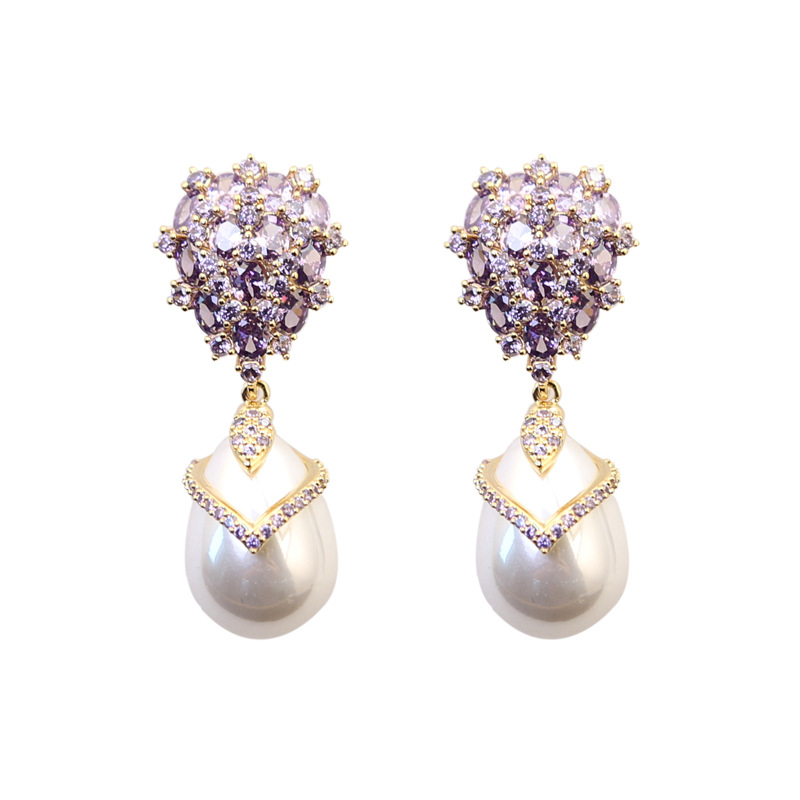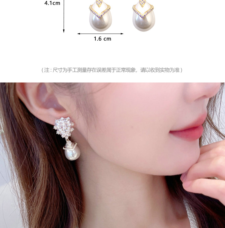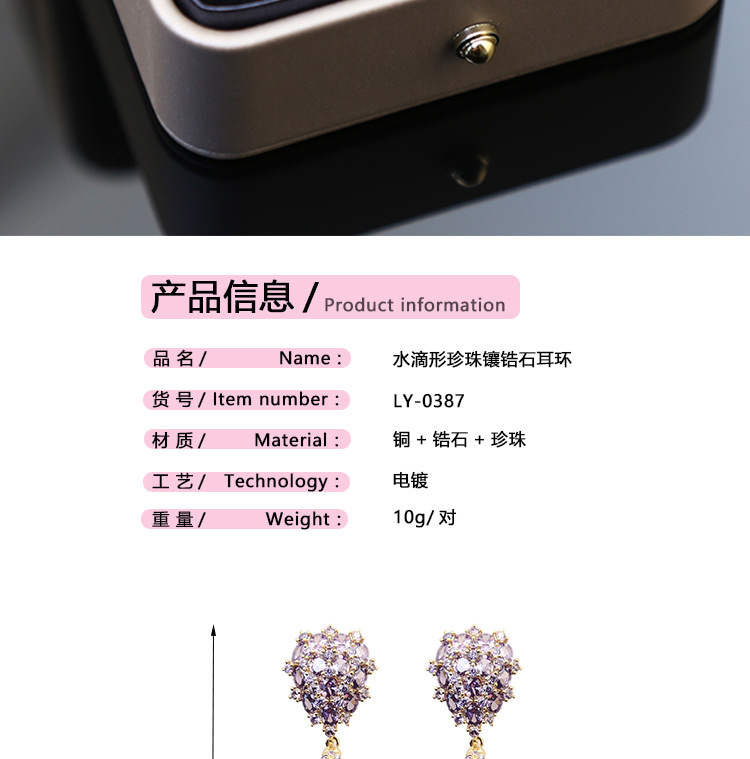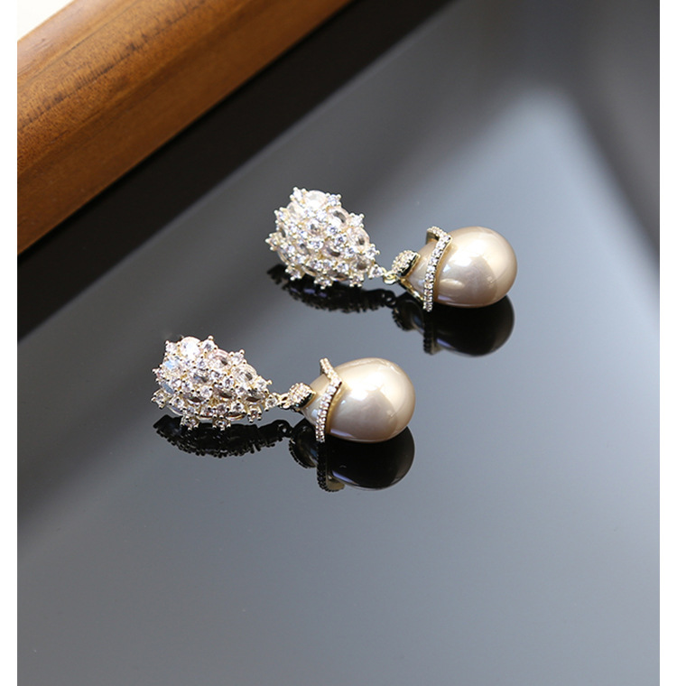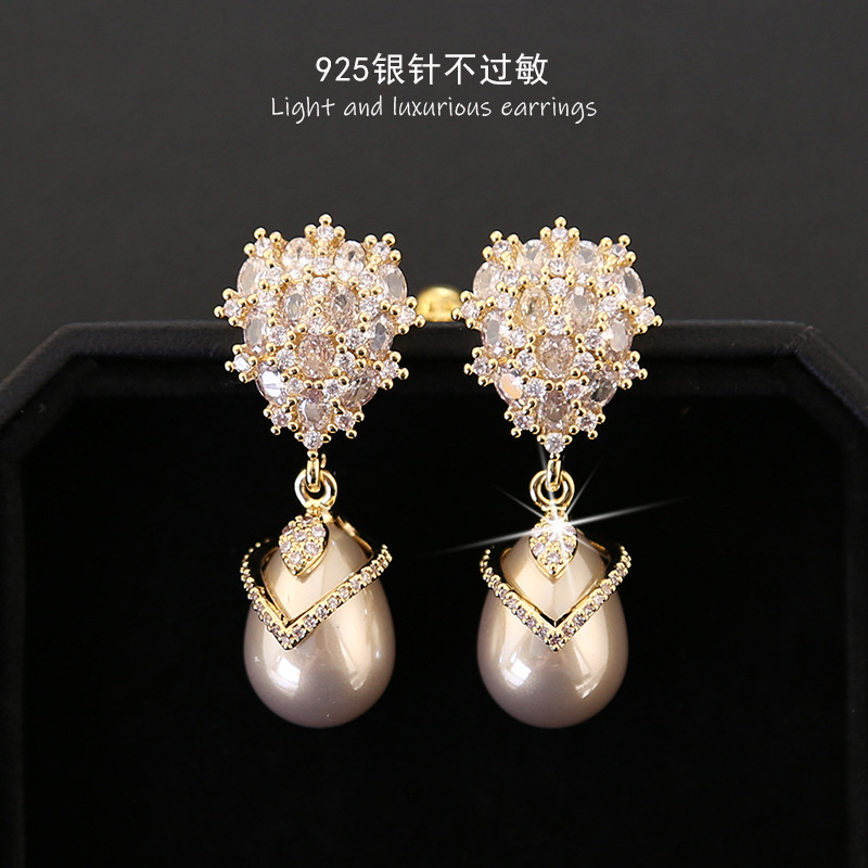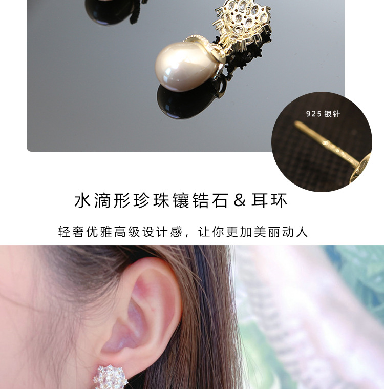 S925银针锆石镶嵌水滴形珍珠耳环高级感轻奢复古气质耳饰新款耳坠