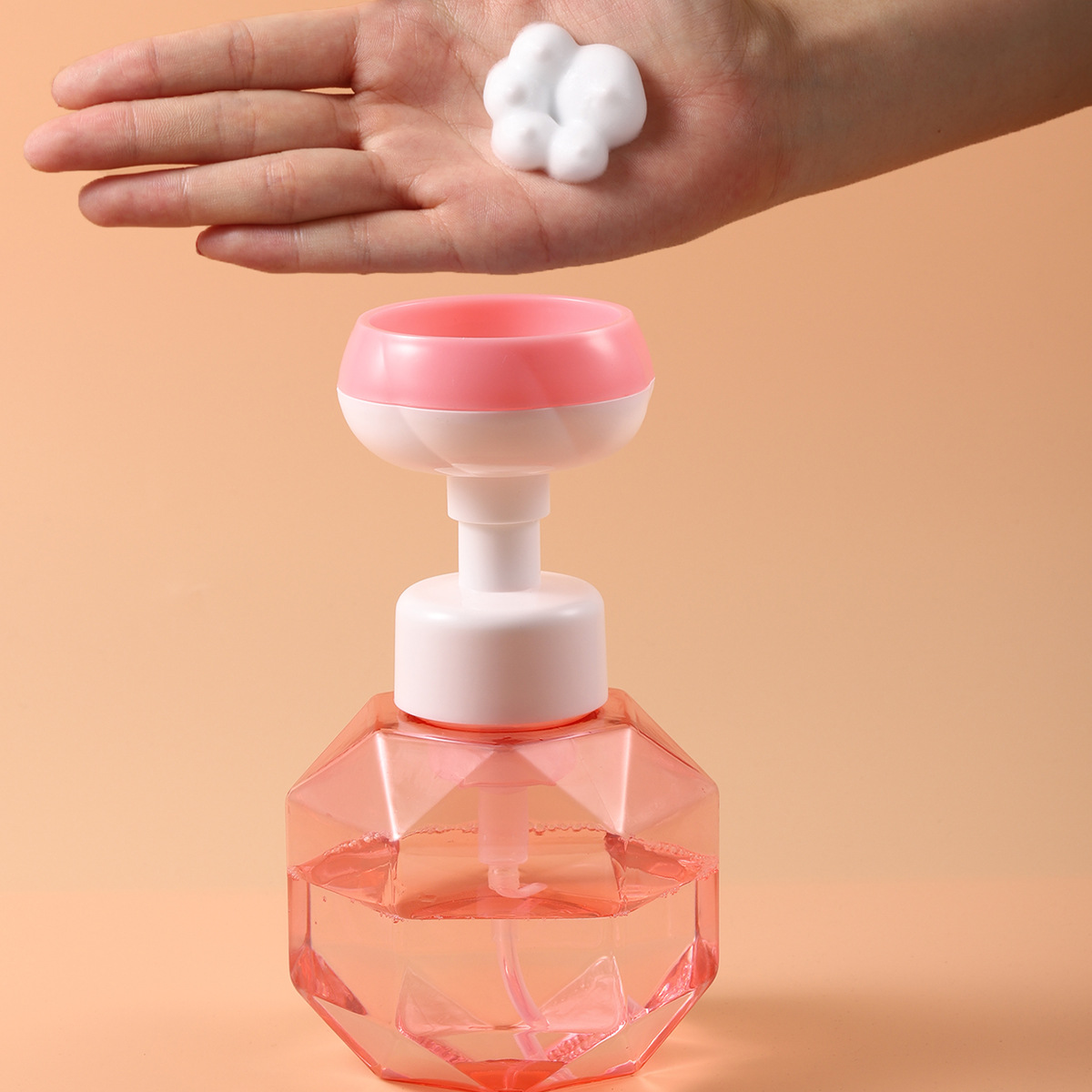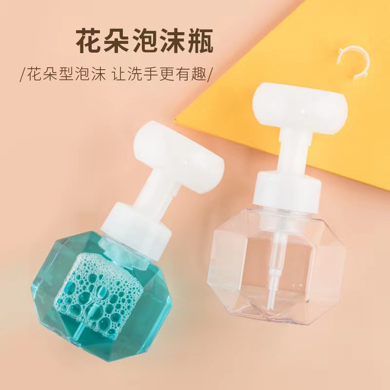 300ML钻石菱形花朵慕斯起泡瓶 泡泡洗手液洗面奶瓶 猫爪起泡分装