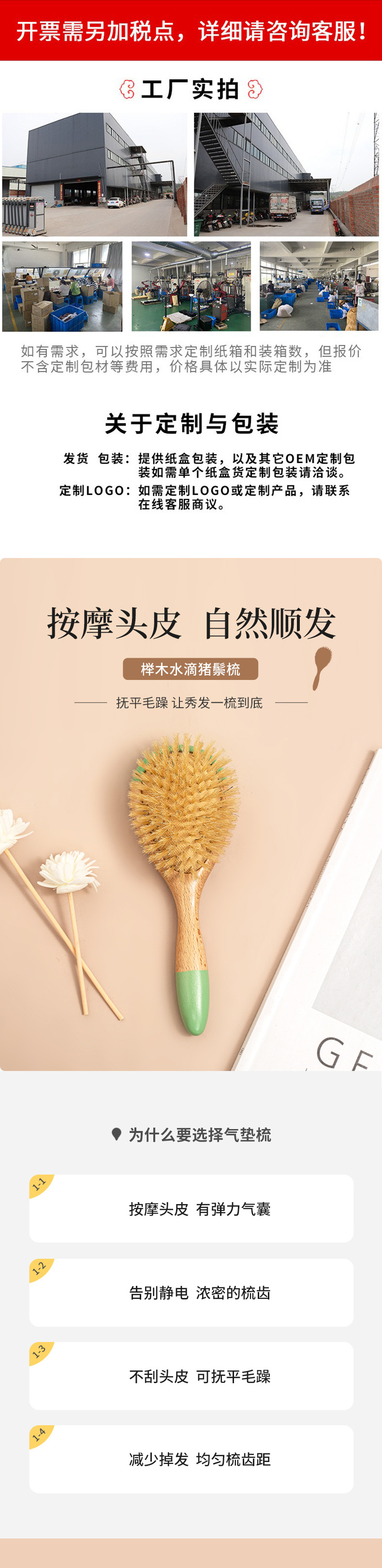 艾丽米亚加工定制榉木猪鬃气垫气囊按摩实木梳跨境顺发少女美发梳 English | 投诉