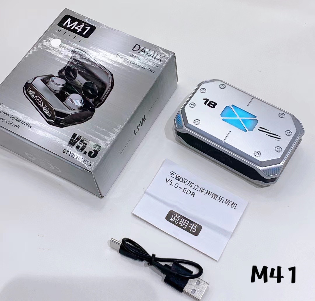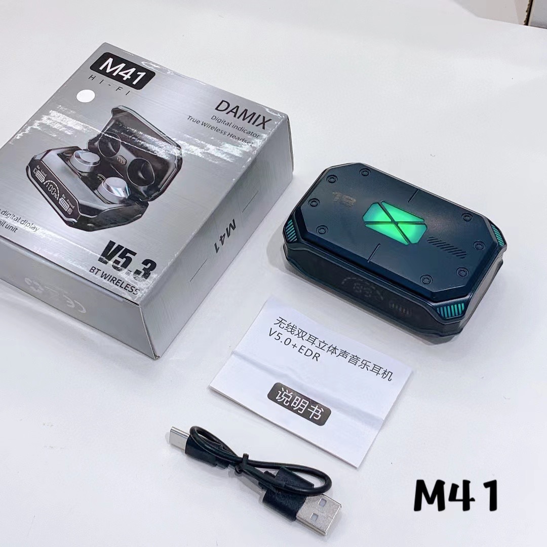 跨境新款机甲风持久续航M41蓝牙耳机5.2无线TWS迷你车载M10耳机