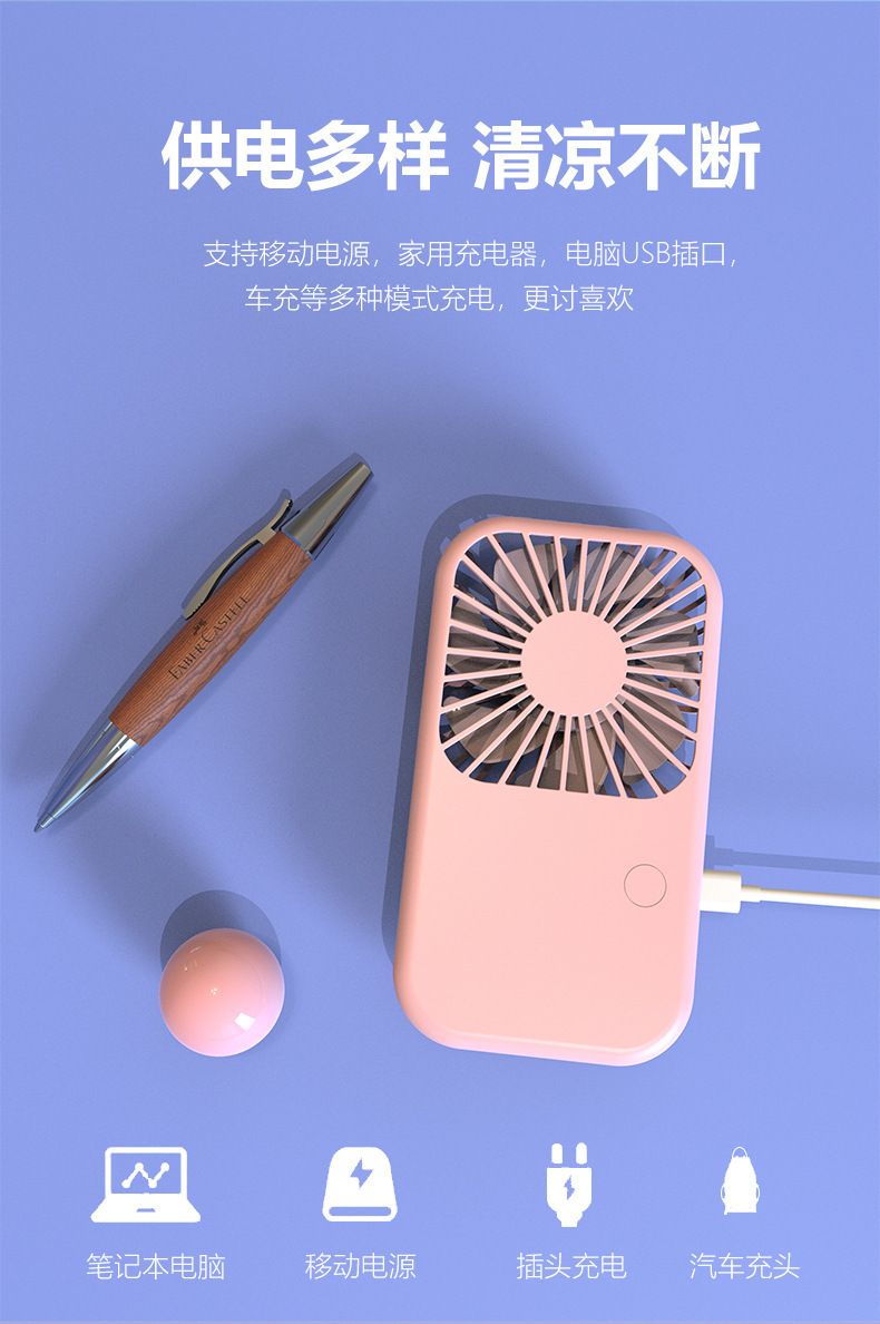 【产品名称】:口袋小方风扇{底部带支架}三挡风速可调节