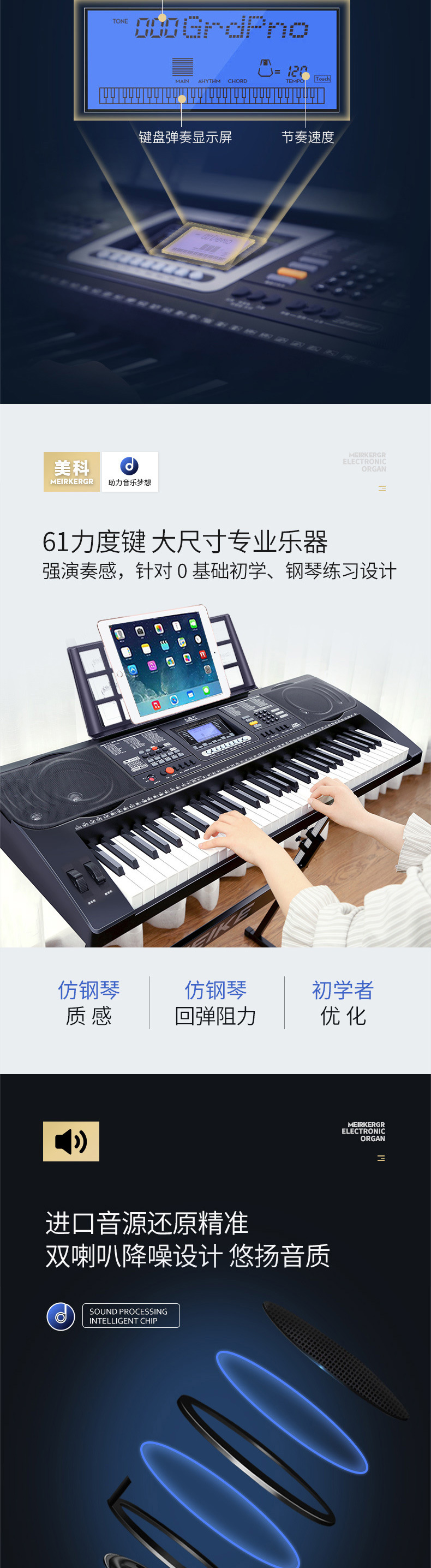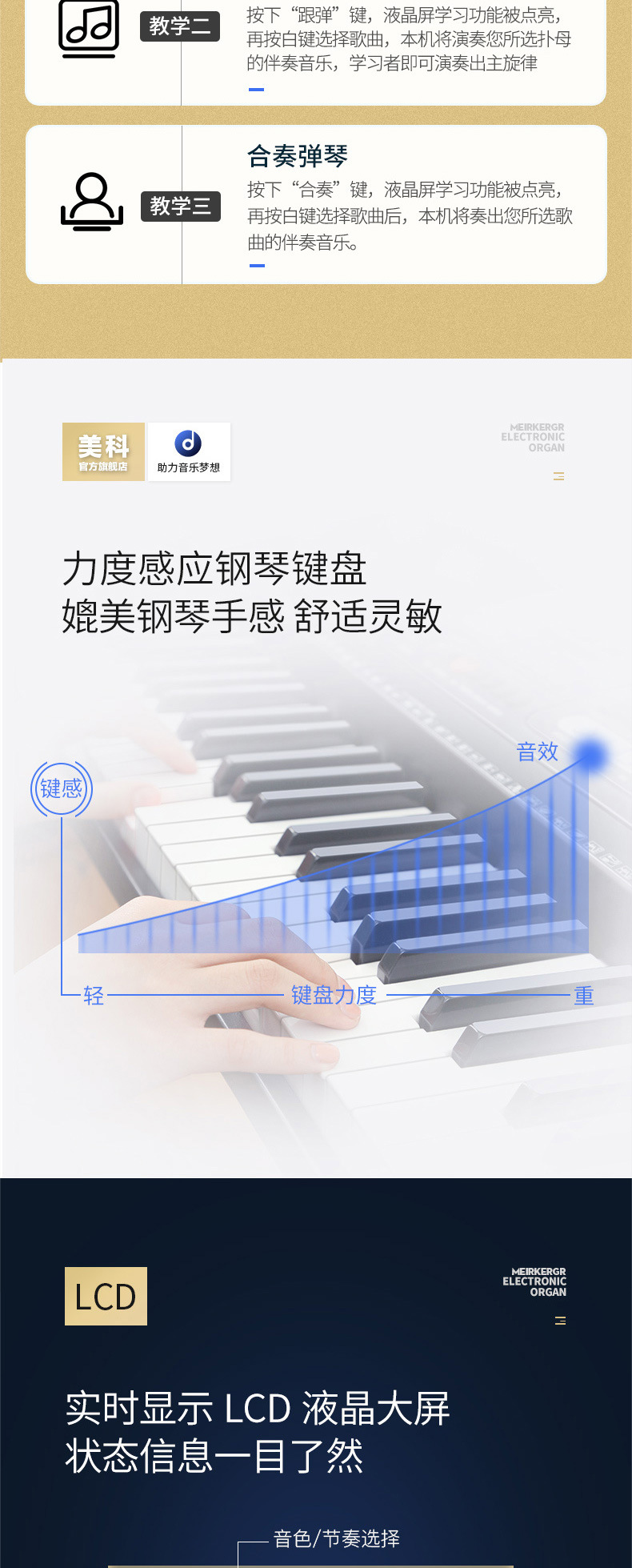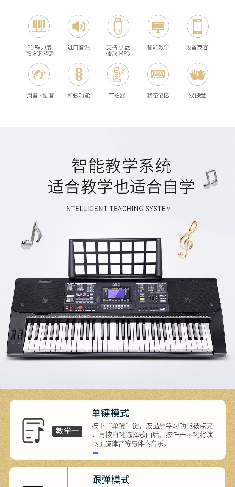 ● 3步教学模式: 单键、跟随、合奏