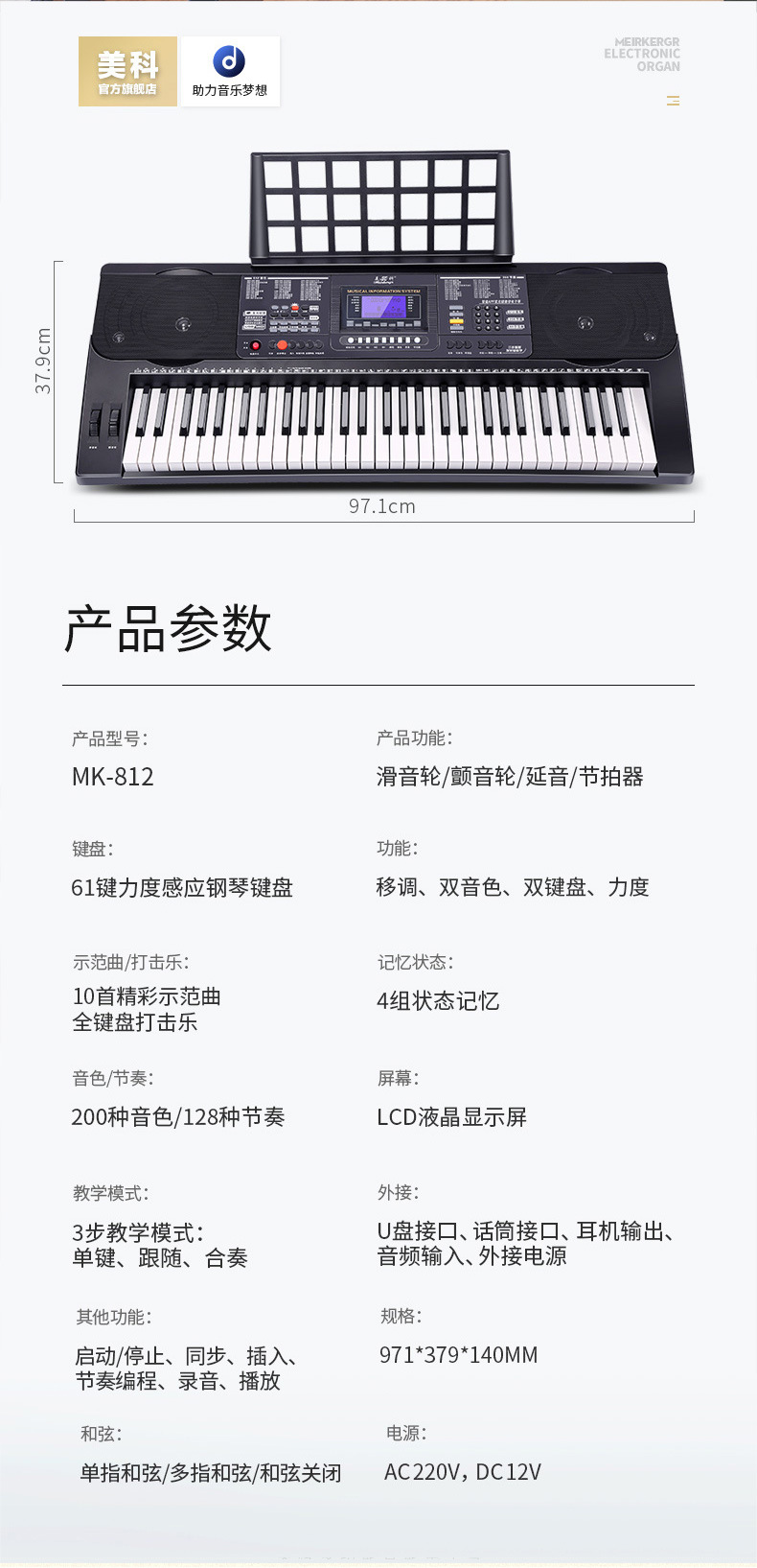 ● 10首示范曲、全键盘打击乐
