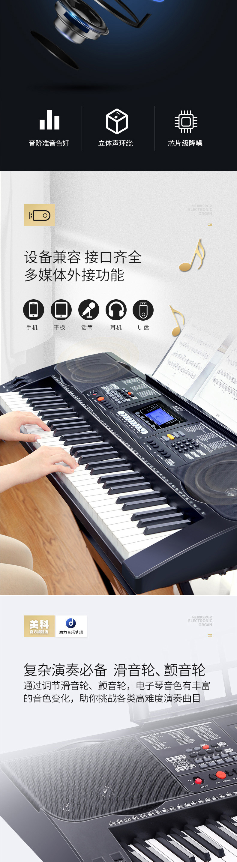 ● 移调、双音色、双键盘、力度