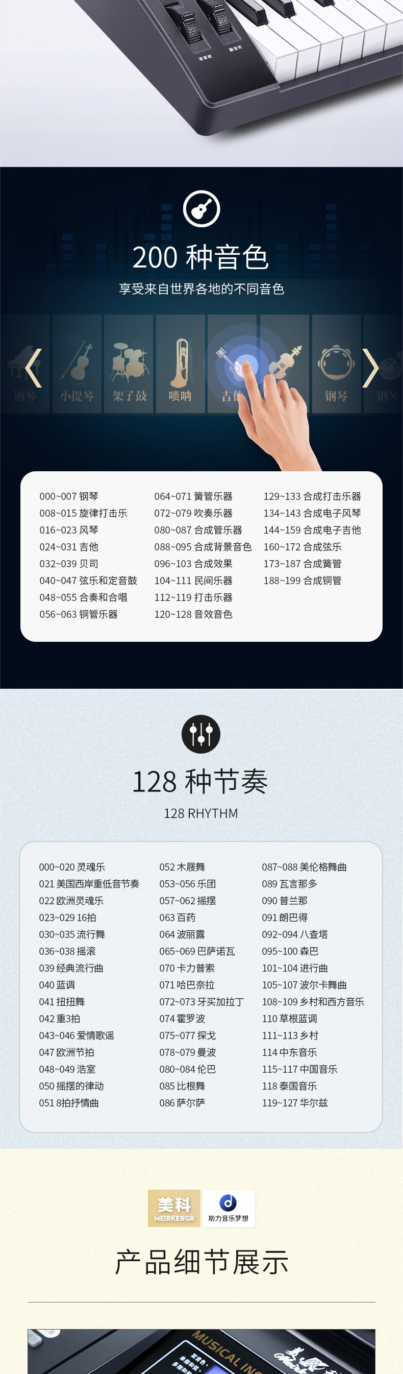 ● 200种音色、128种节奏