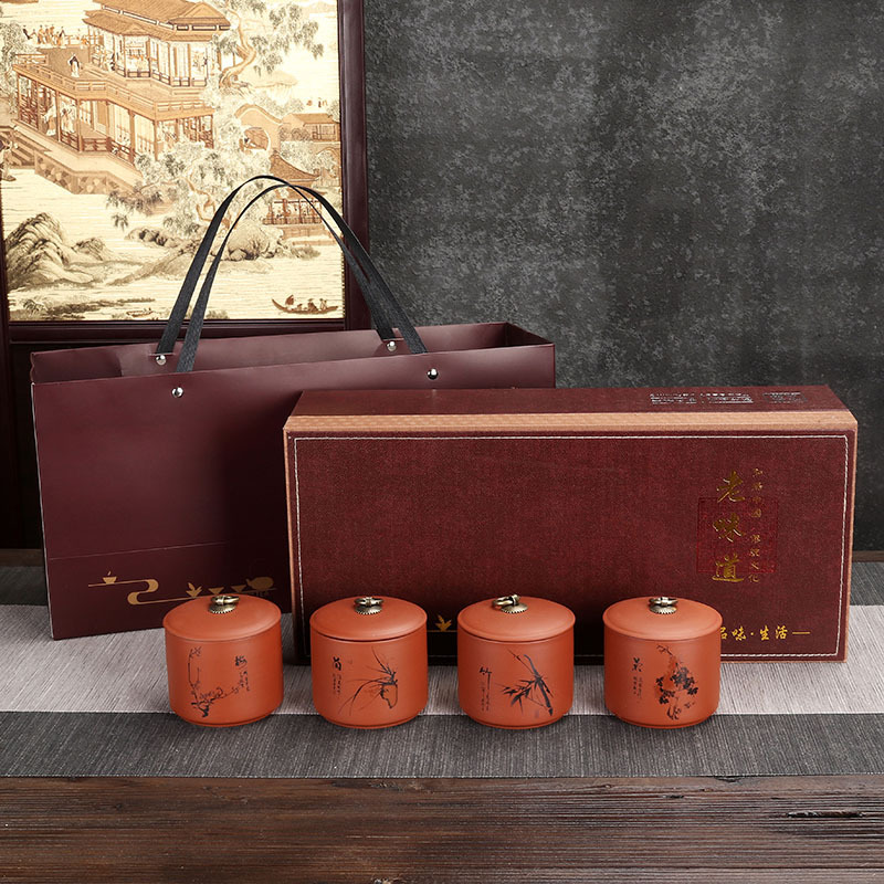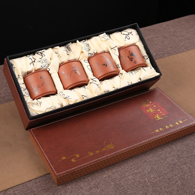 批发紫砂茶叶罐陶瓷 老味道仿皮茶叶包装盒空礼盒 小罐茶礼盒空盒