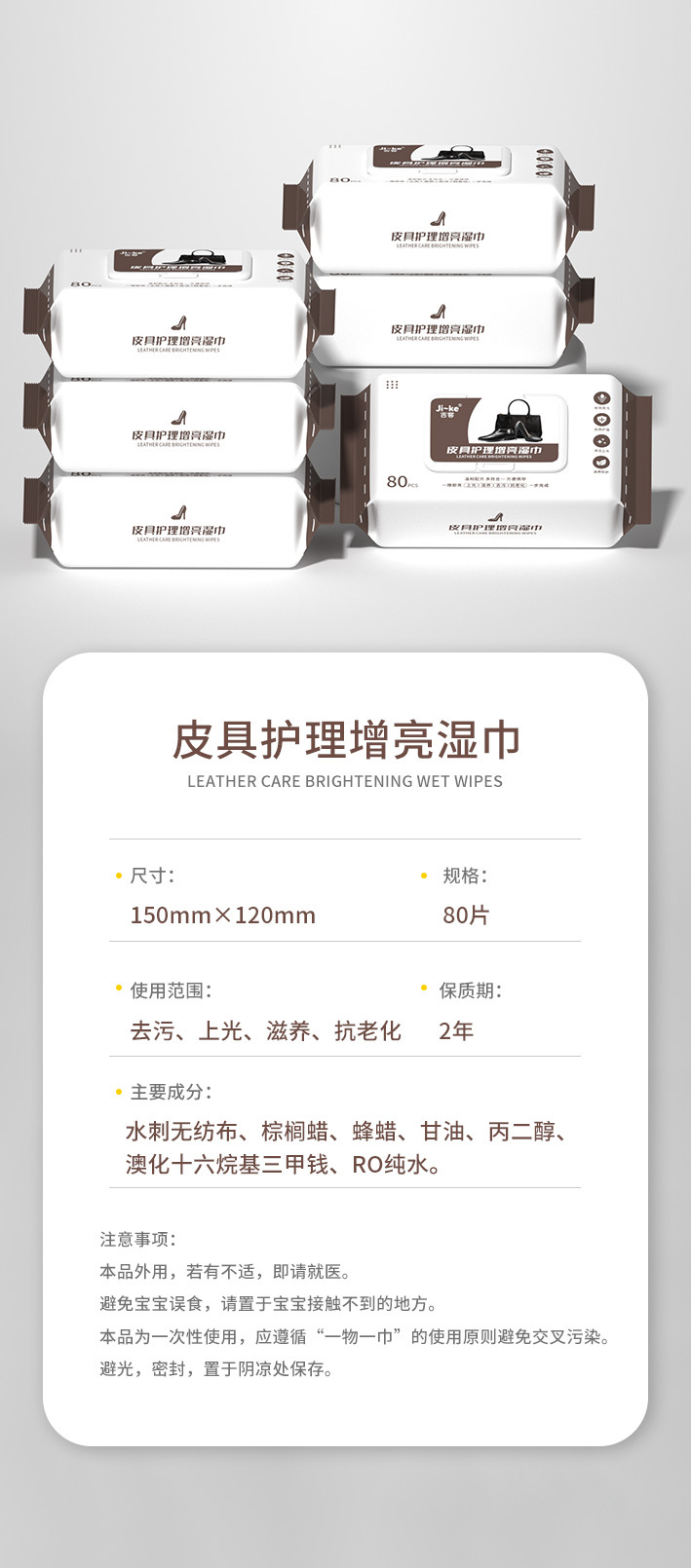 皮革护理湿巾皮衣皮鞋皮包真皮保养湿巾纸皮具上光增亮便携湿纸巾
