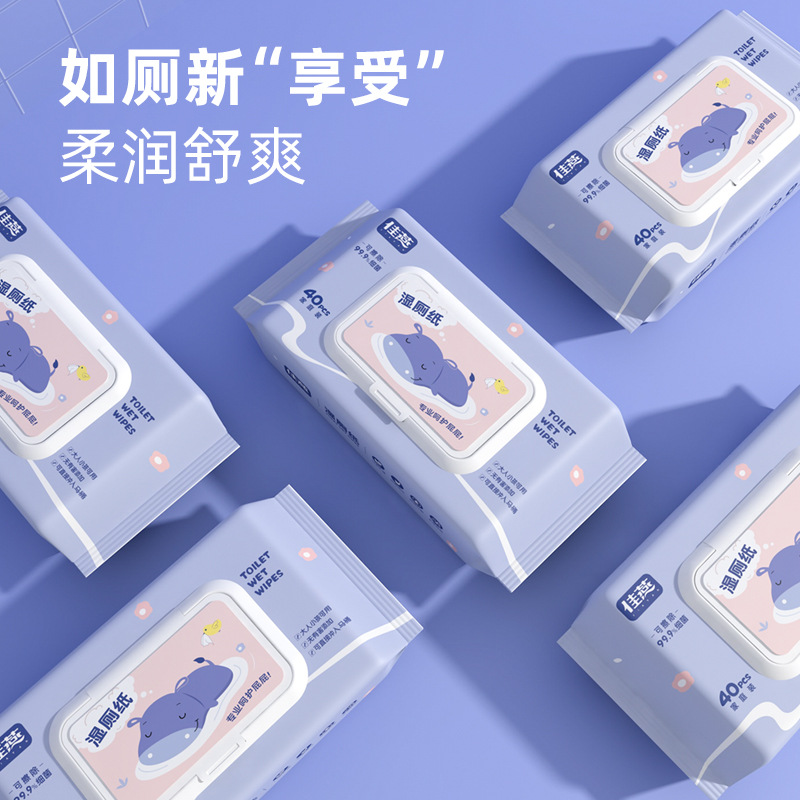 抖音爆款40抽湿厕纸冲马桶不堵可冲散降解卫生清洁厕用湿纸巾批发
