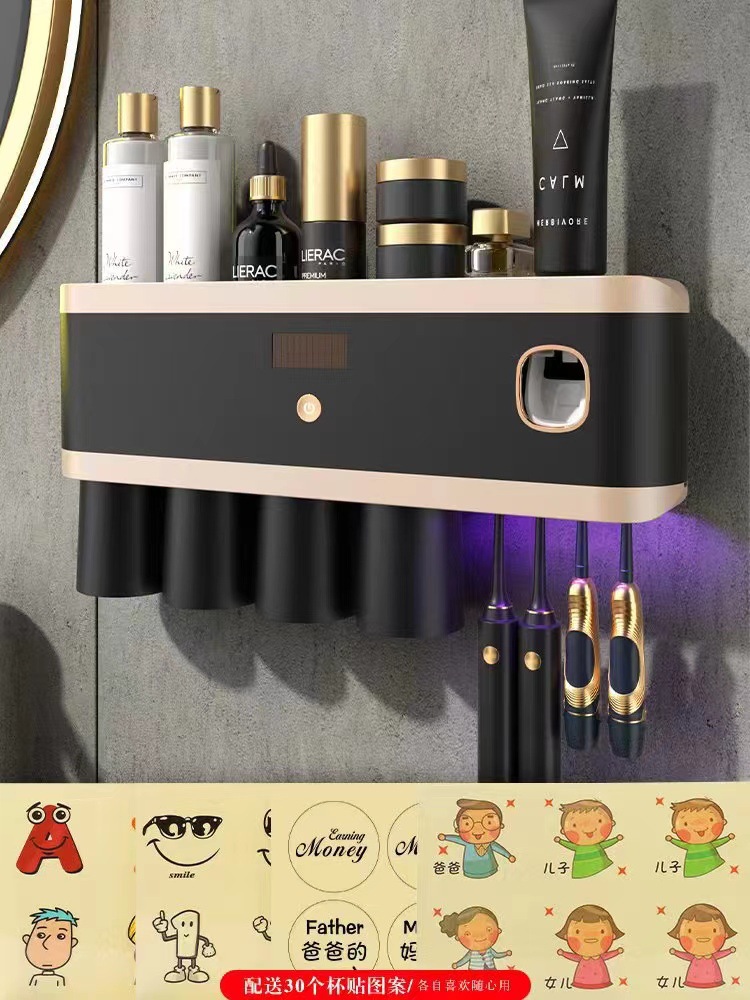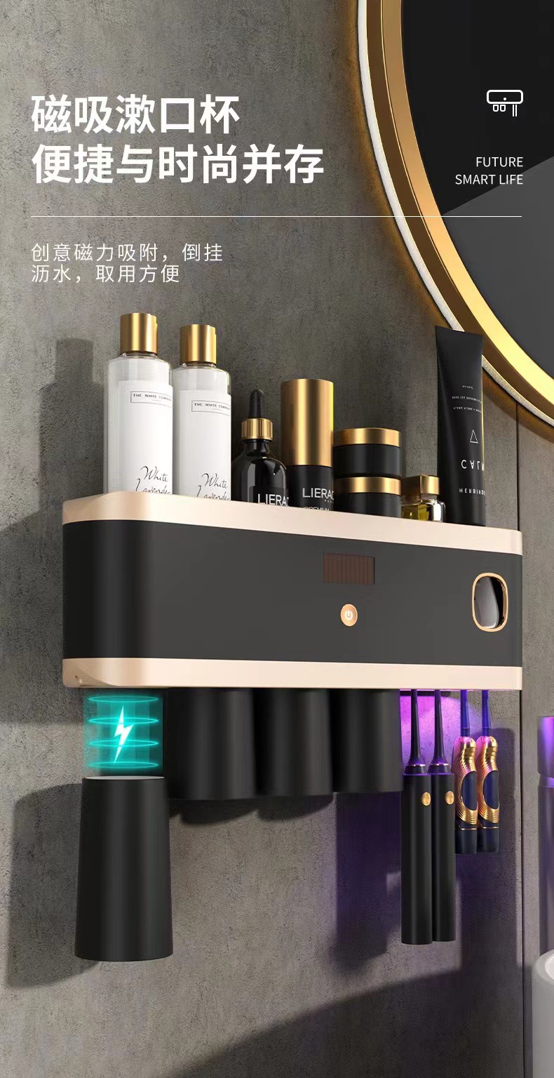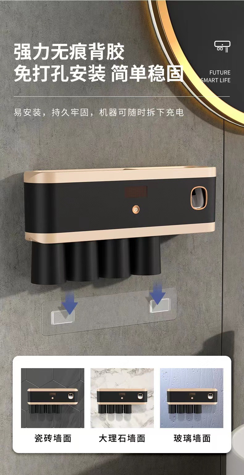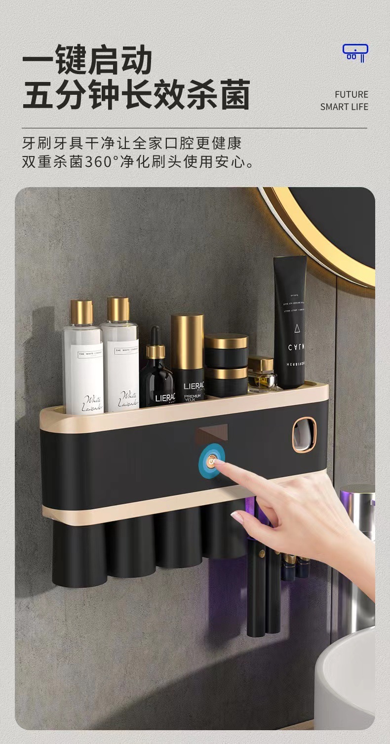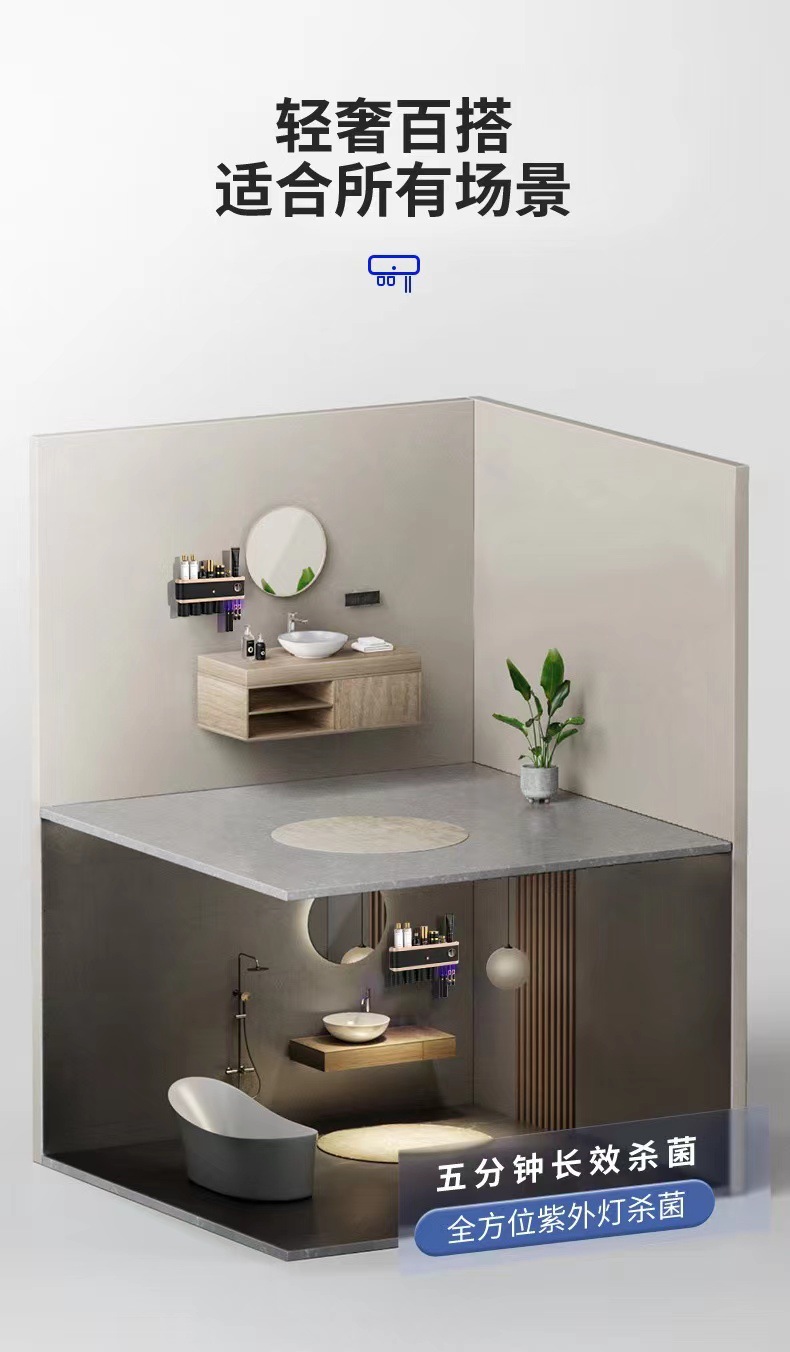新款紫外线杀菌牙刷架壁挂式牙刷消毒器免打孔多功能牙刷置物架