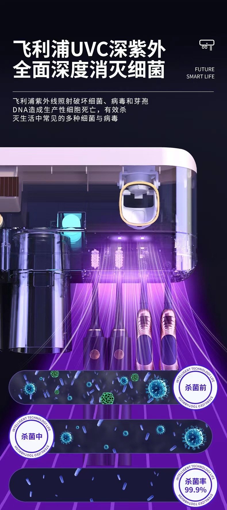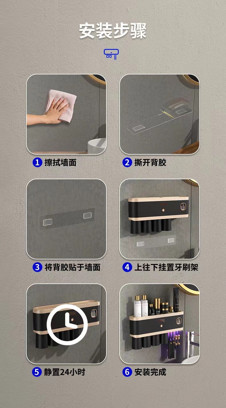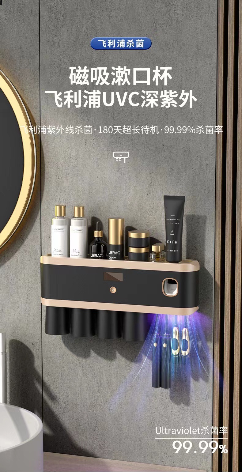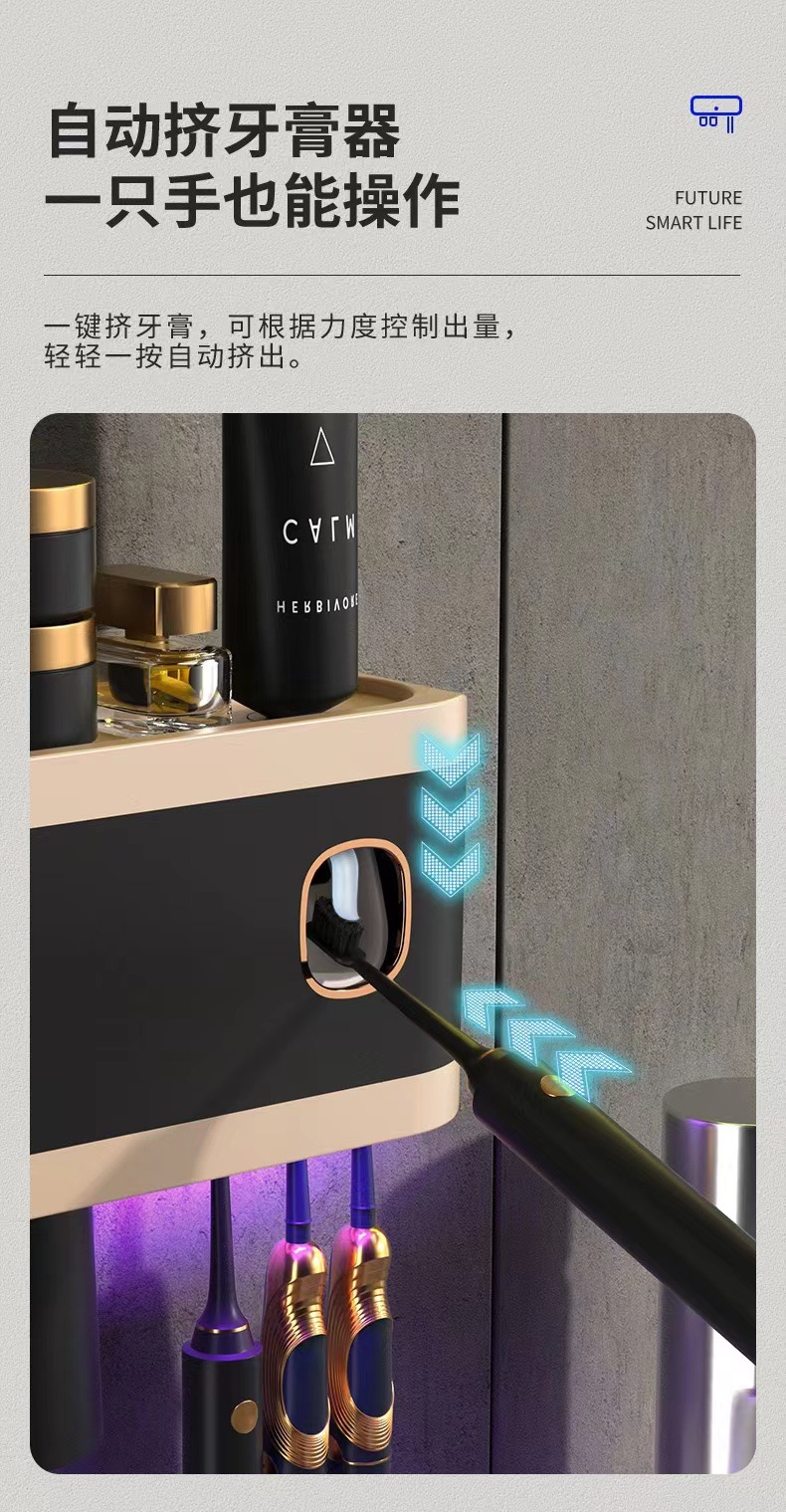 新款紫外线杀菌牙刷架壁挂式牙刷消毒器免打孔多功能牙刷置物架 投诉