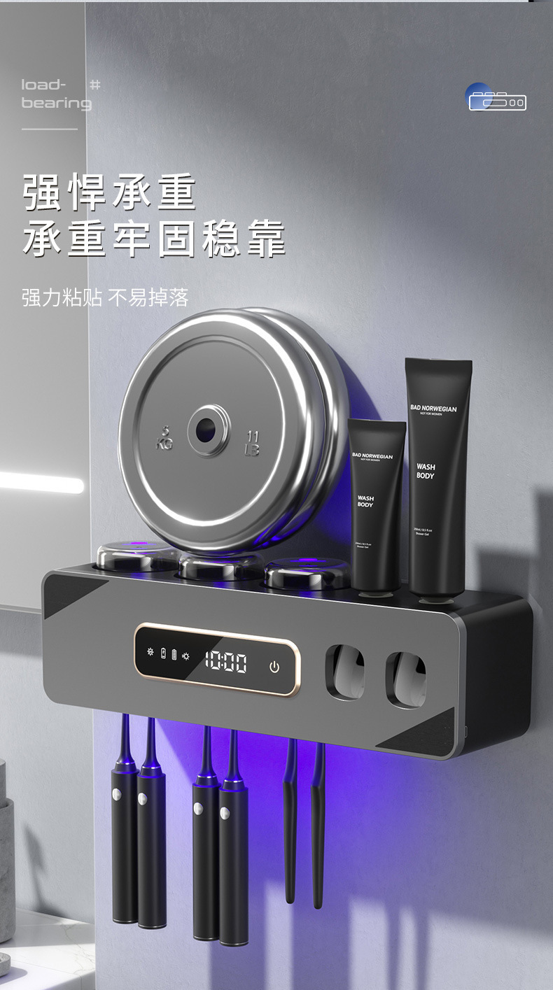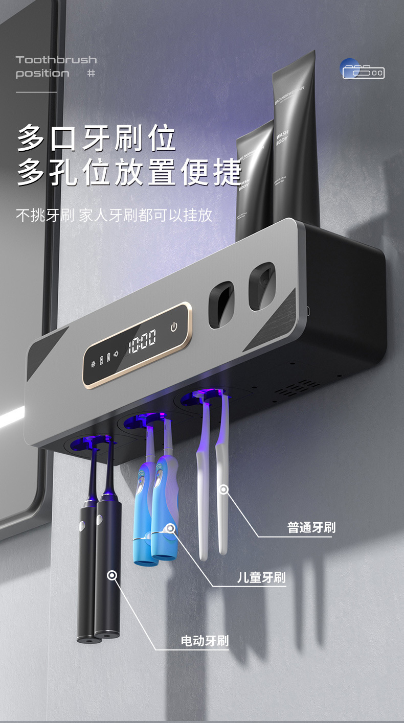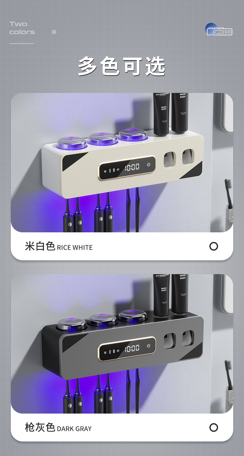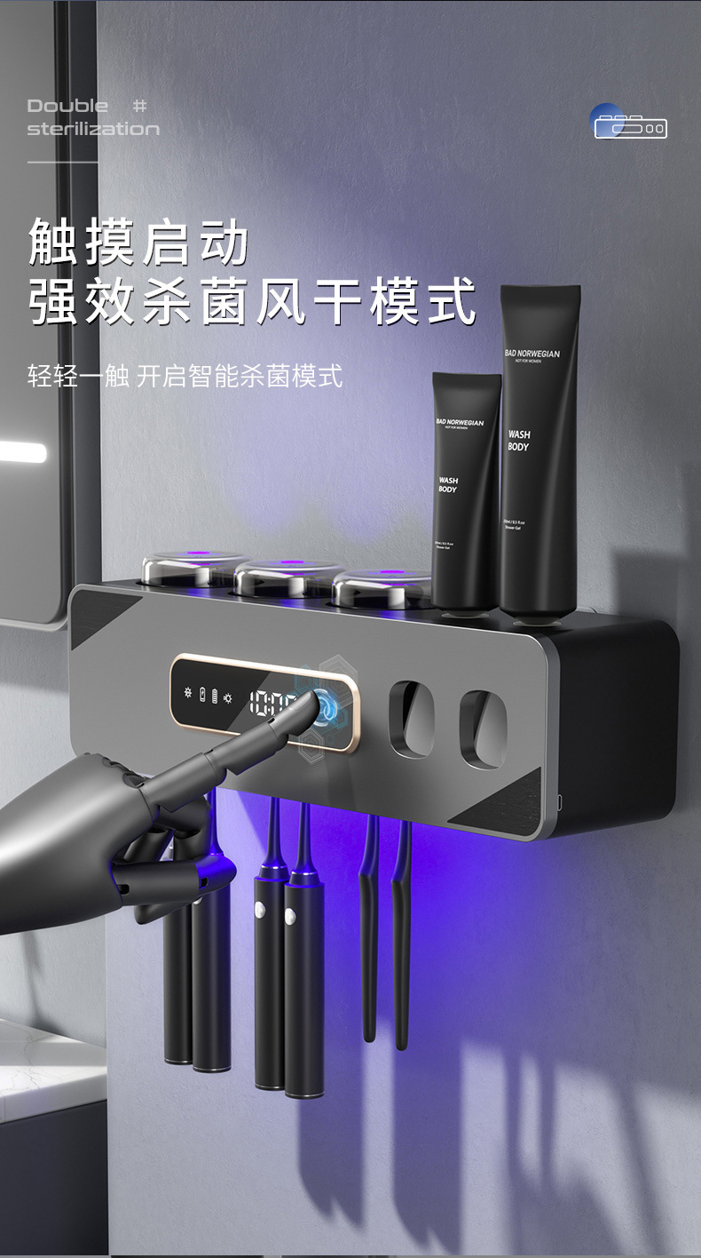 智能烘干壁挂牙刷杯消毒器收纳紫外线杀菌免打孔卫生间洗漱套装