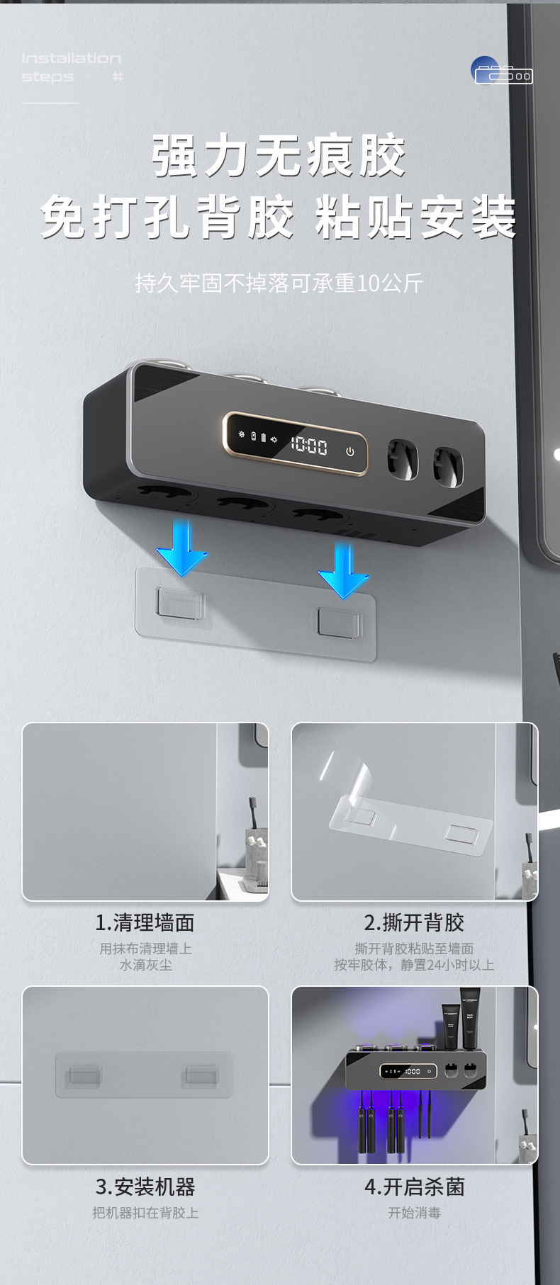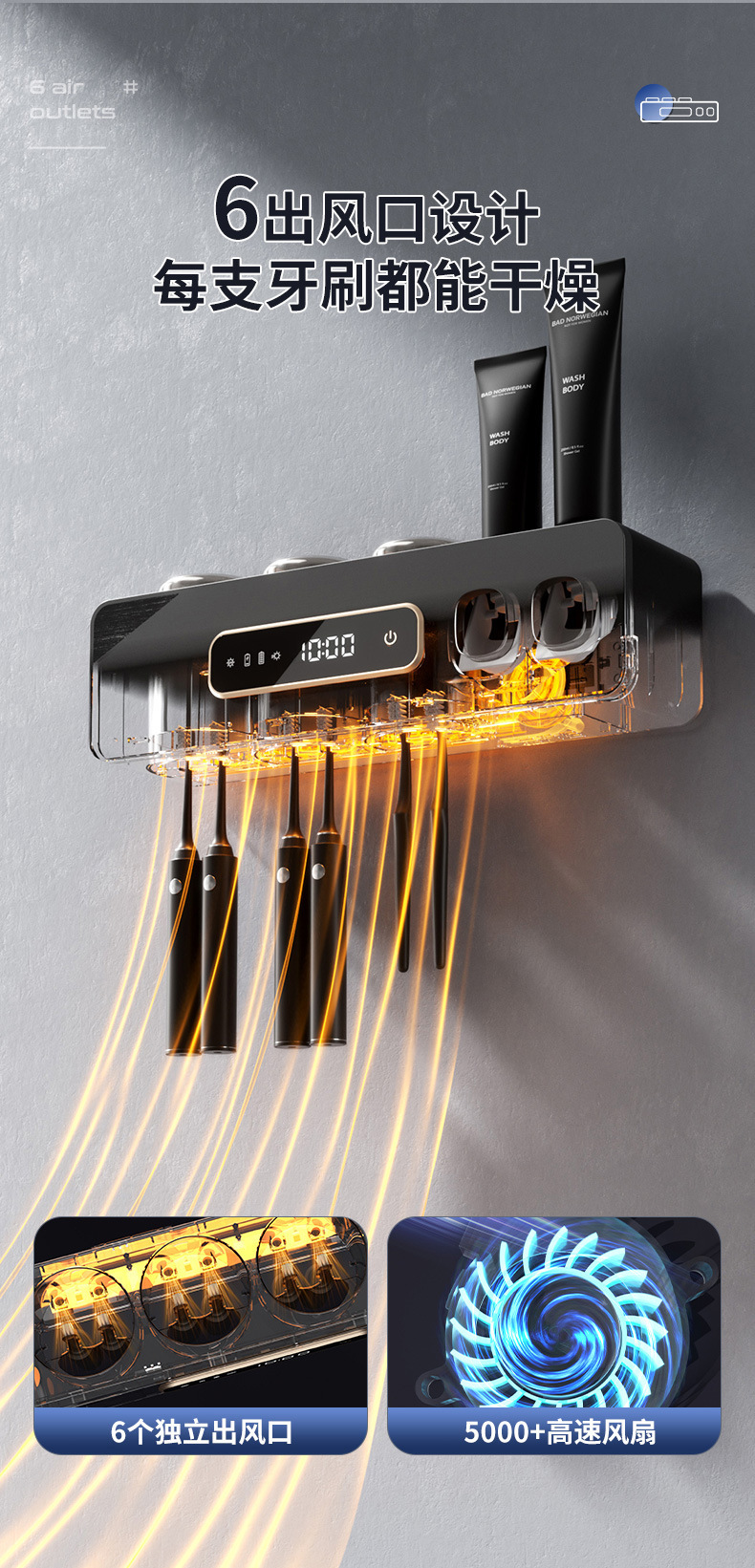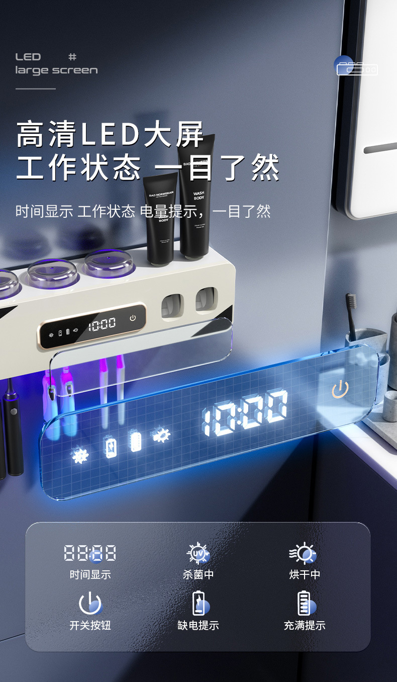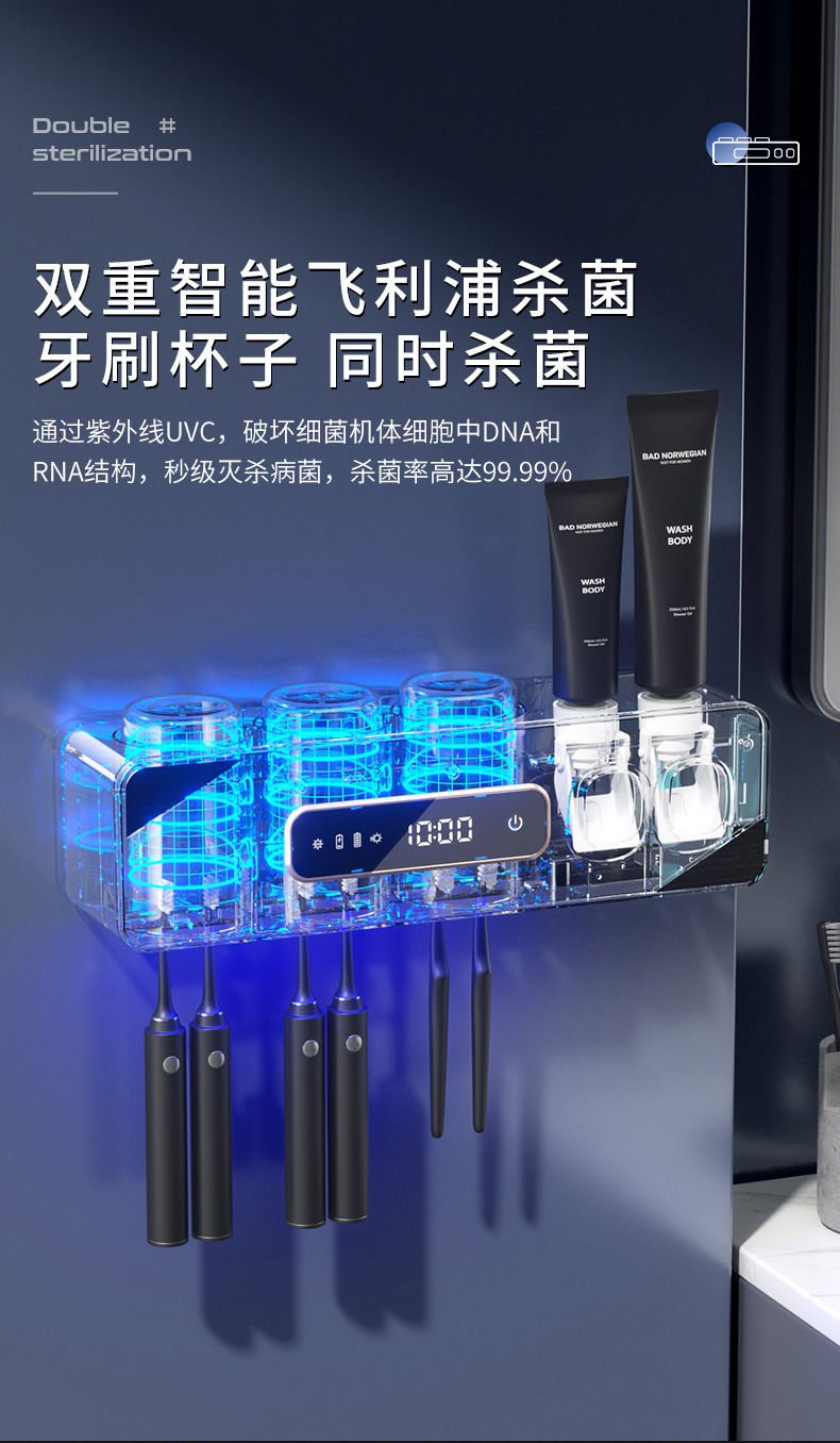 智能烘干壁挂牙刷杯消毒器收纳紫外线杀菌免打孔卫生间洗漱套装