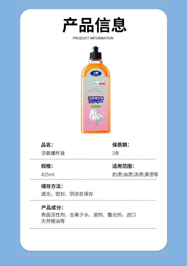 活氧爆炸液去渍去污去油渍清洁剂泡泡液厂家直销一件代发