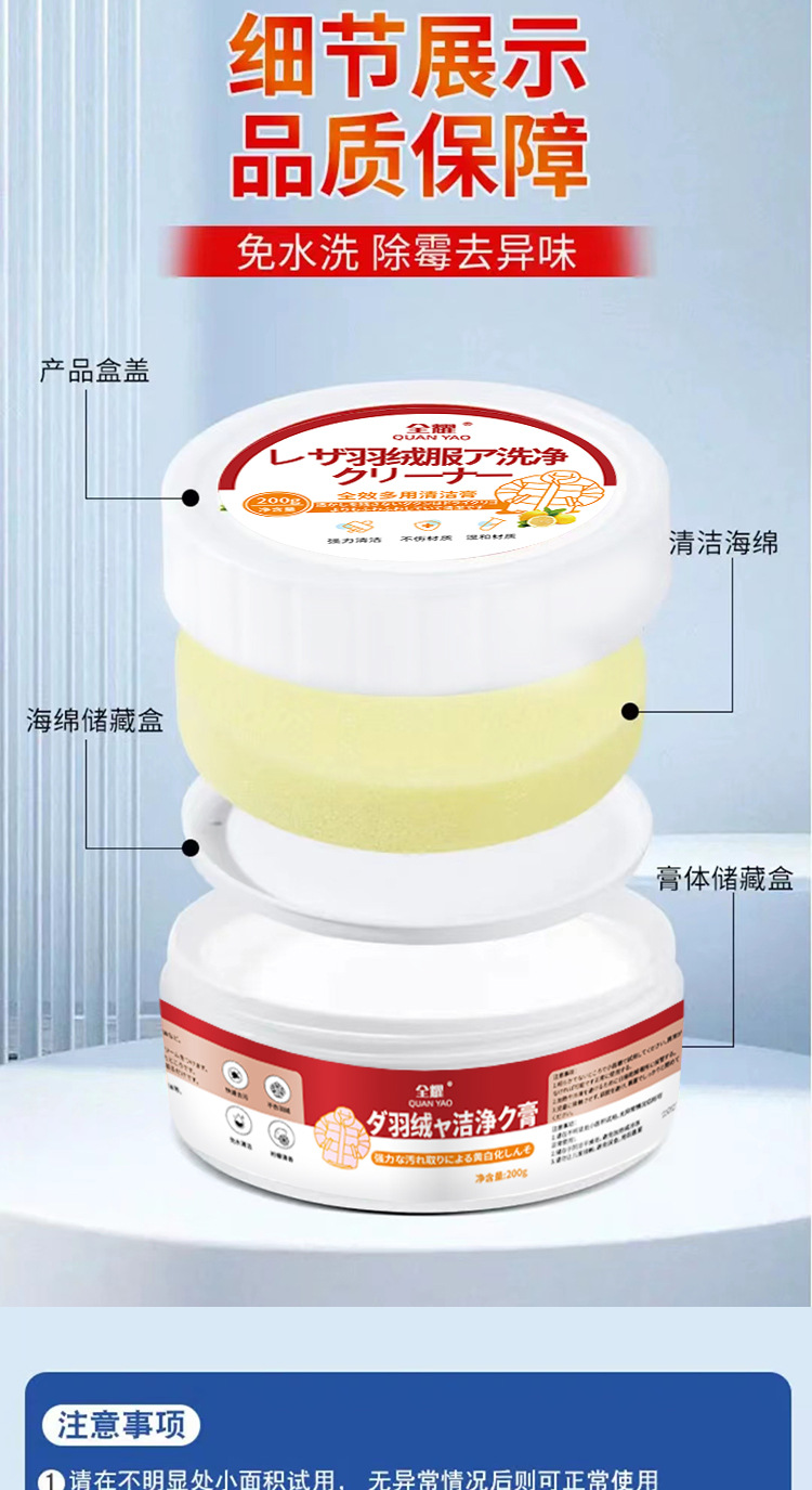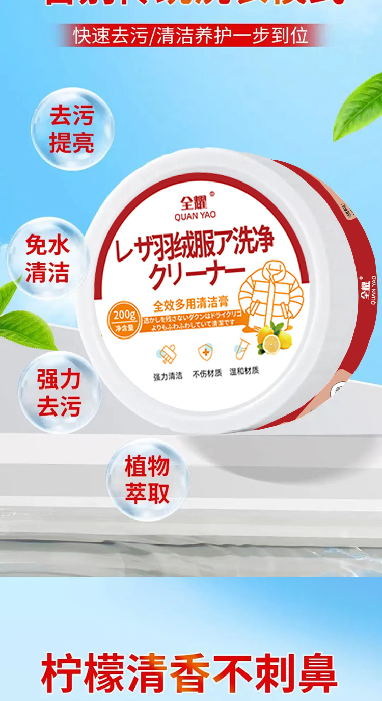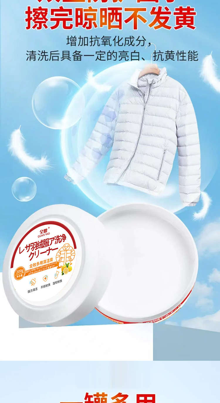全耀羽绒服清洁膏免水洗家用干洗专用清洁洗涤洗白色去污神器免洗