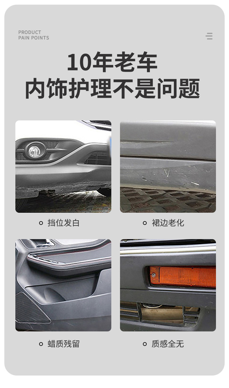 汽车塑料翻新剂还原剂多用护理剂镀晶车用表板蜡车内饰修复划痕 投诉