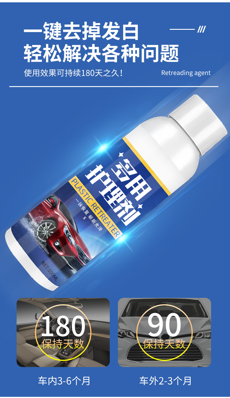 汽车塑料翻新剂还原剂多用护理剂镀晶车用表板蜡车内饰修复划痕