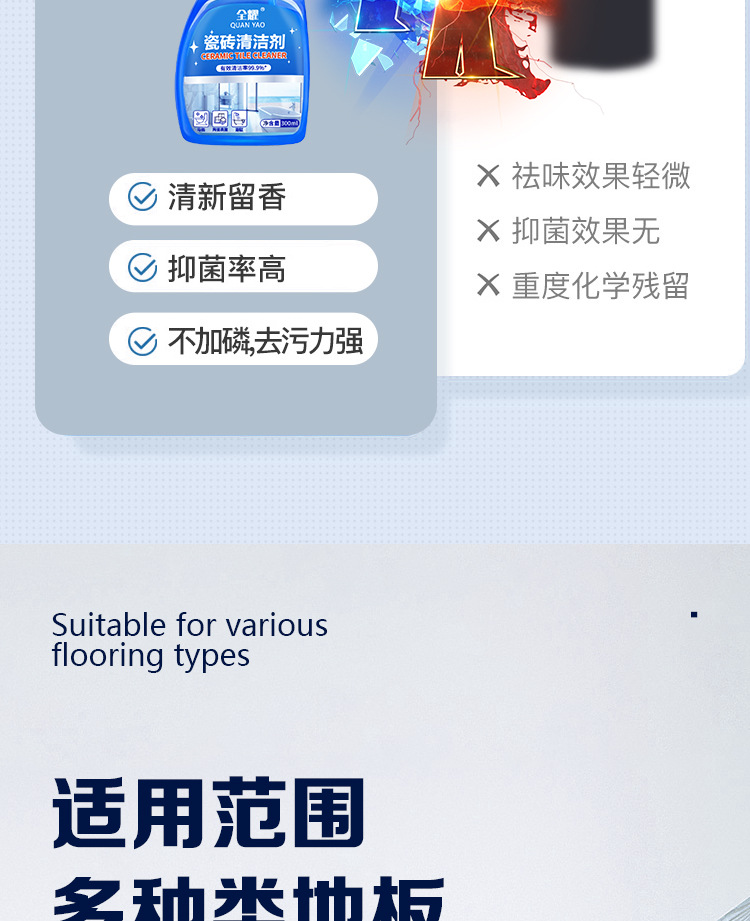 全耀瓷砖除蜡剂家用地板客厅卧室卫生大理石地面光亮强力去污垢剂 投诉