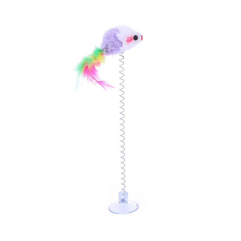 猫玩具吸盘弹簧老鼠逗猫棒吸盘羽毛铃铛吸附式猫玩具成幼猫咪益智