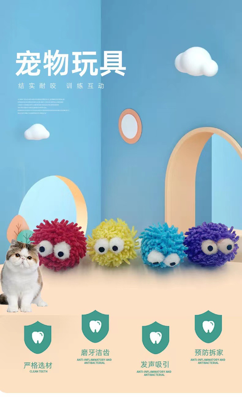 福狸猫玩具球球啃咬毛线球叫叫球逗猫小玩具磨牙耐咬自嗨毛绒球 投诉