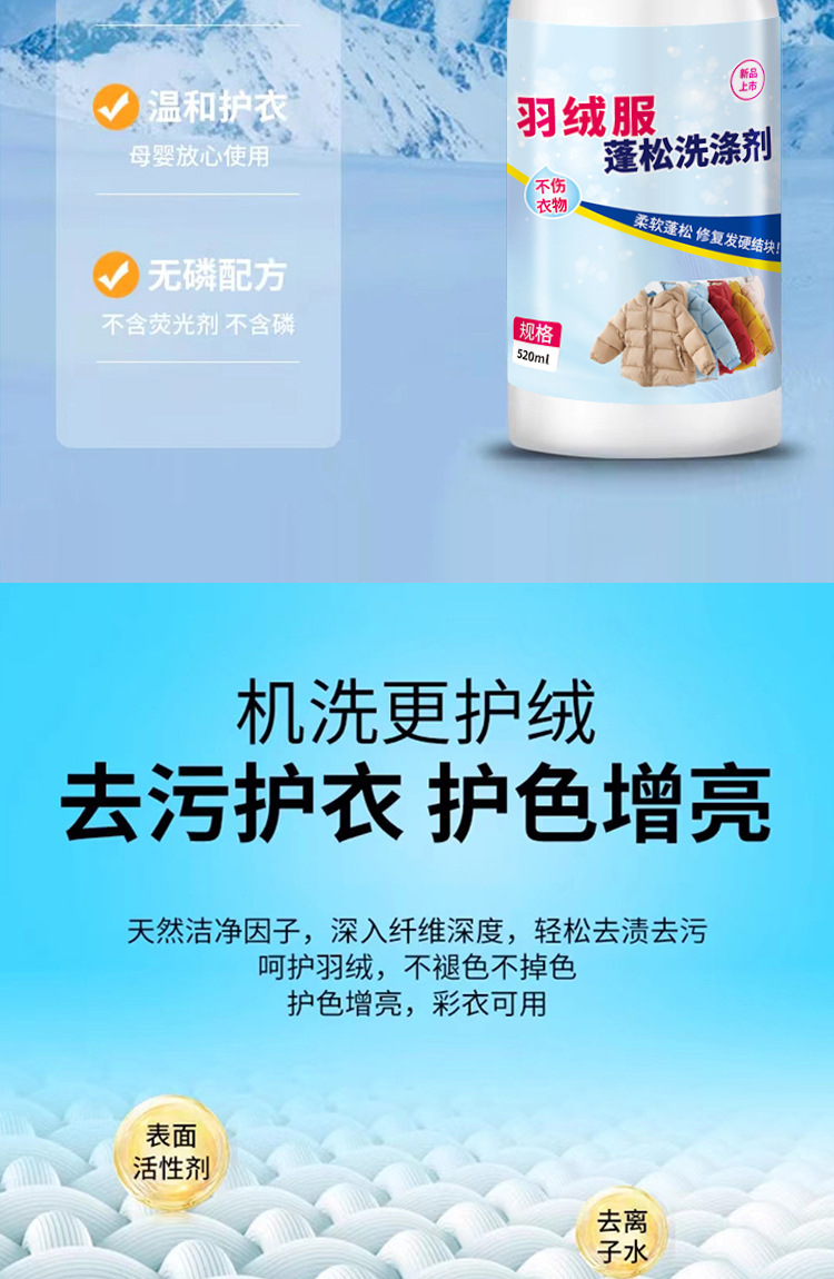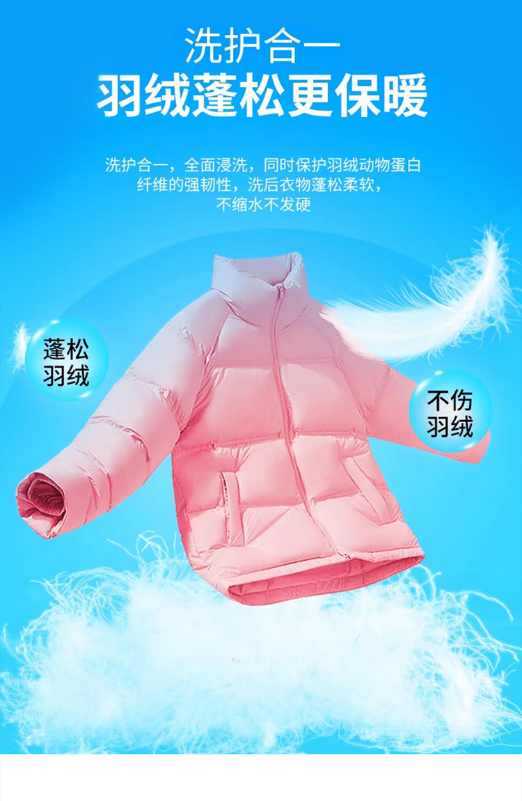 羽绒服蓬松剂防缩水干瘪恢复柔软修复膨松护理剂防结块起坨洗涤剂