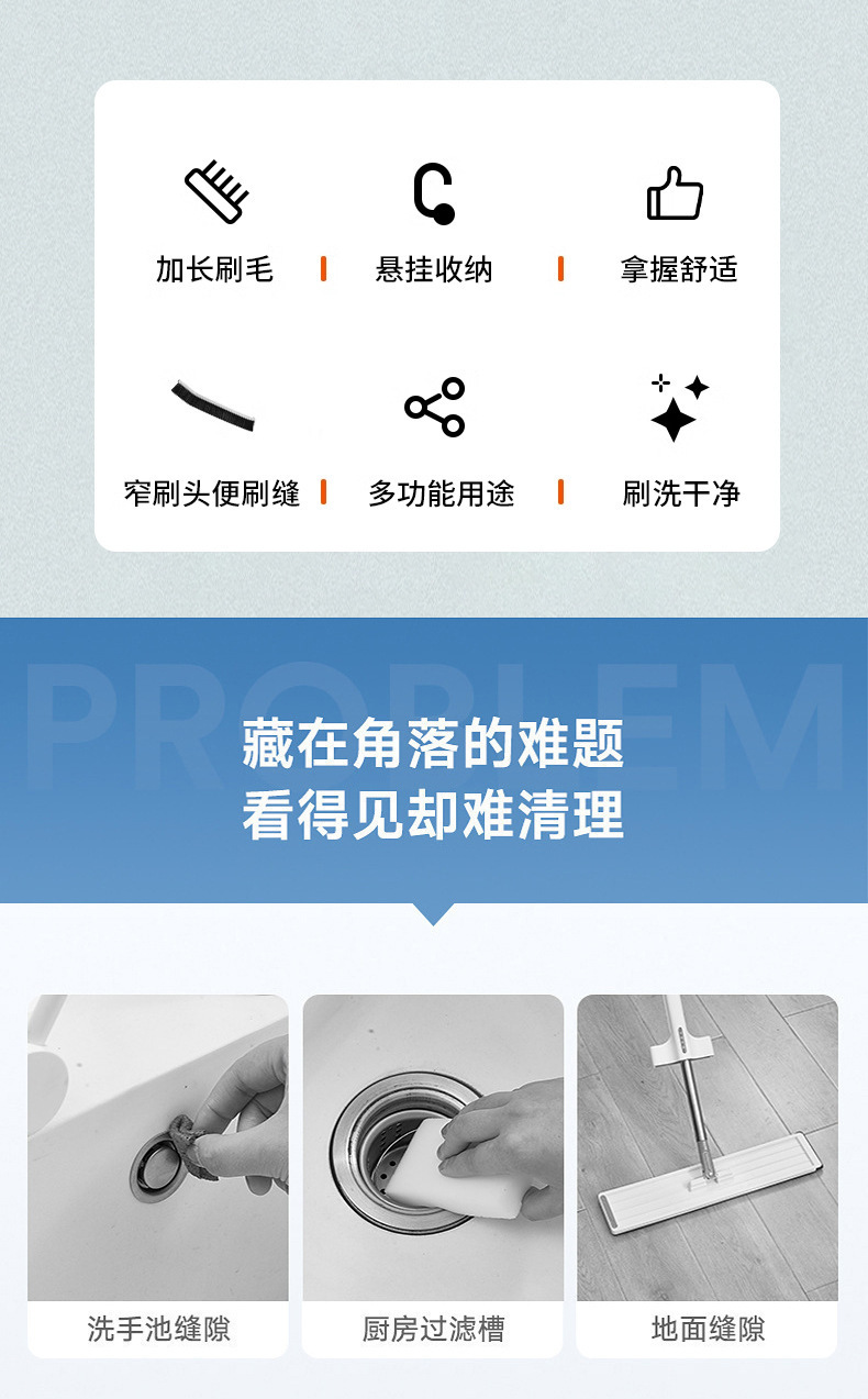 多功能浴室缝隙清洁刷卫生间门缝窗户硬毛刷子长柄长条家用窄夹缝 投诉