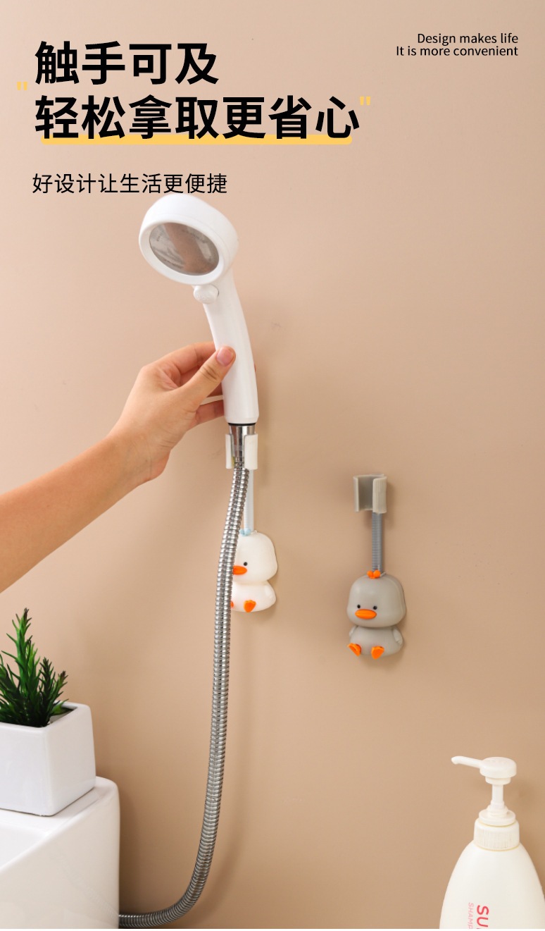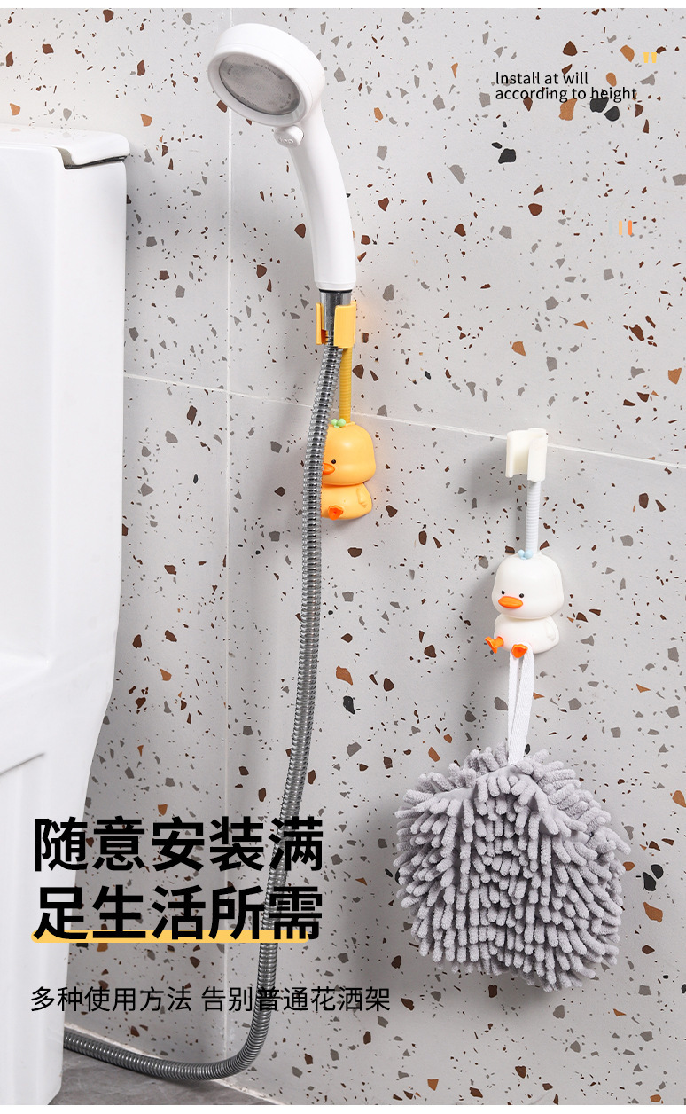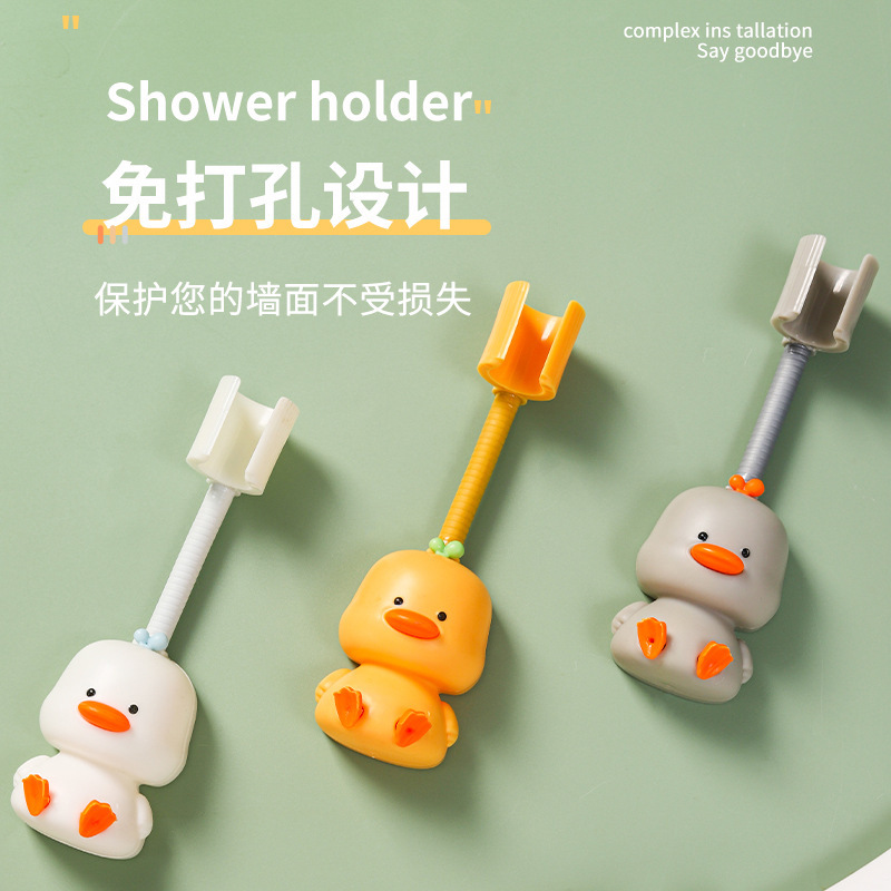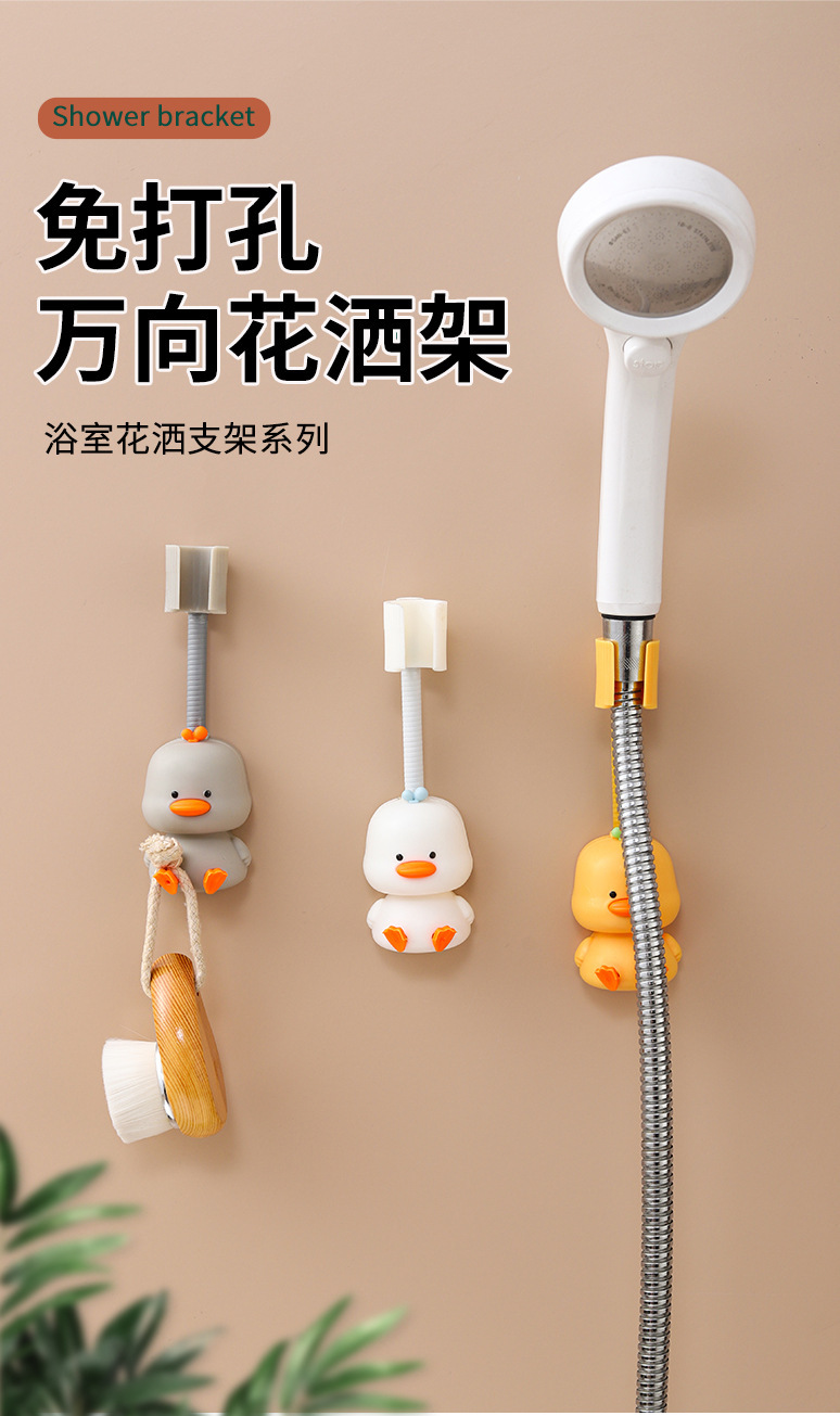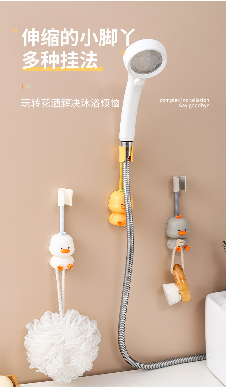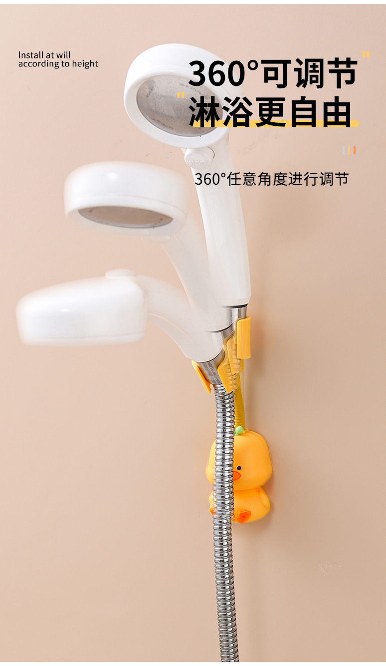 新品浴室喷头固定底座 壁挂式免打孔360度可调节小黄鸭花洒置物架