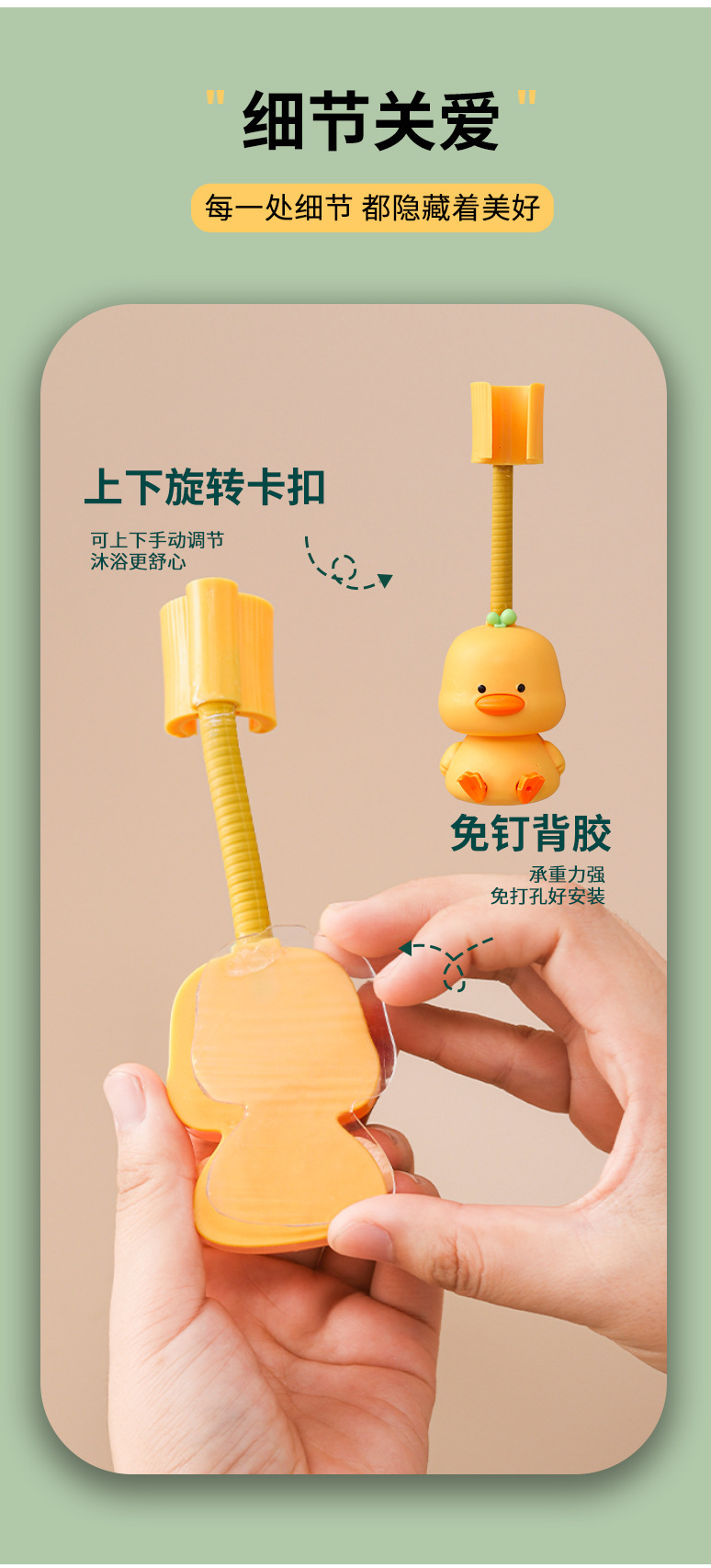 新品浴室喷头固定底座 壁挂式免打孔360度可调节小黄鸭花洒置物架 投诉