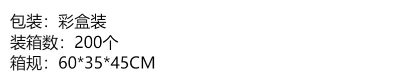 品牌: 其他 包装: 无包装 颜色: 混搭 风格: 大众 尺码: 均码 装箱信息:长宽高:50X40X40cm 装箱重量: 10KG 装箱数量:500pcs