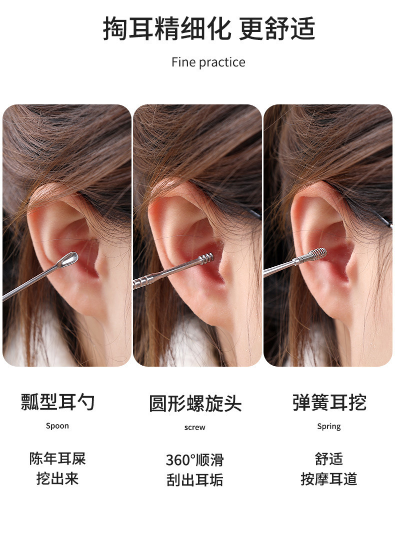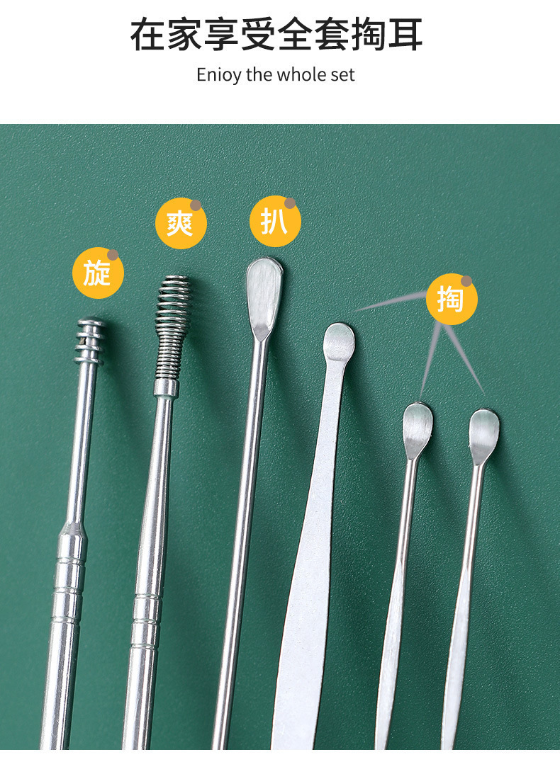 掏耳挖耳勺不锈钢掏耳勺耳朵采耳专用工具套装大人儿童掏耳六件套