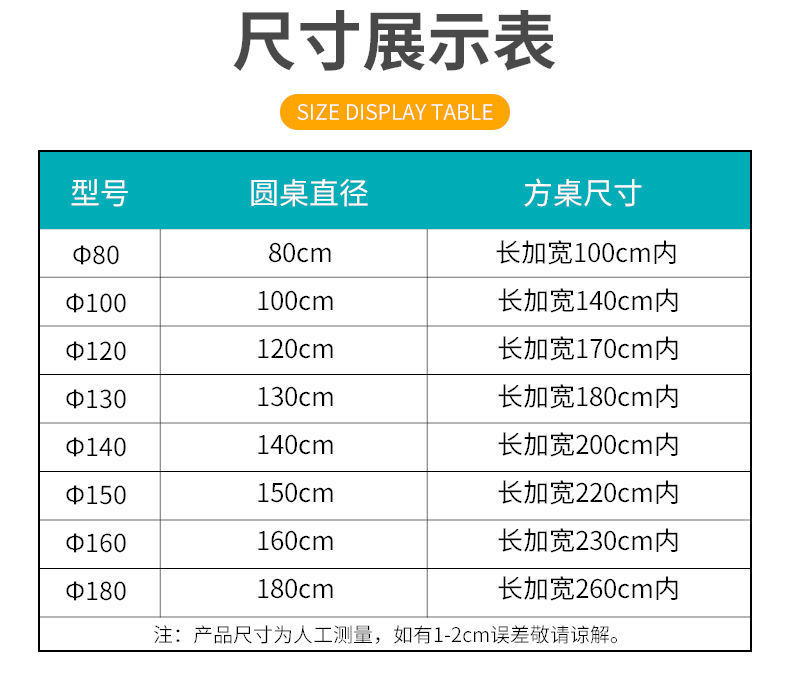 | 圆桌直径100cm/方桌直径140cm | ¥44 | 2365235个可售 |
