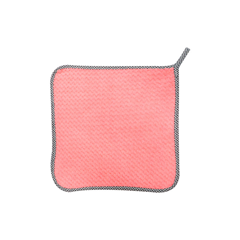洗碗抹布珊瑚绒小方巾柔软高密加厚吸水菠萝格方巾厨房抹布可挂式
