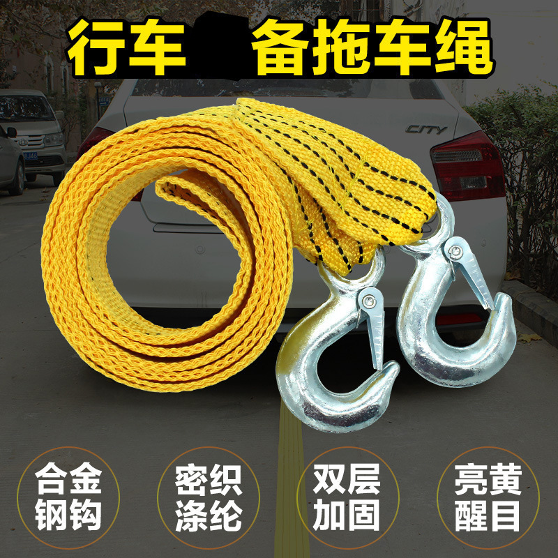 尼龙双扁绳荧光牵引绳 车用汽车强力拖车绳3吨4米 拖车带插卡包装