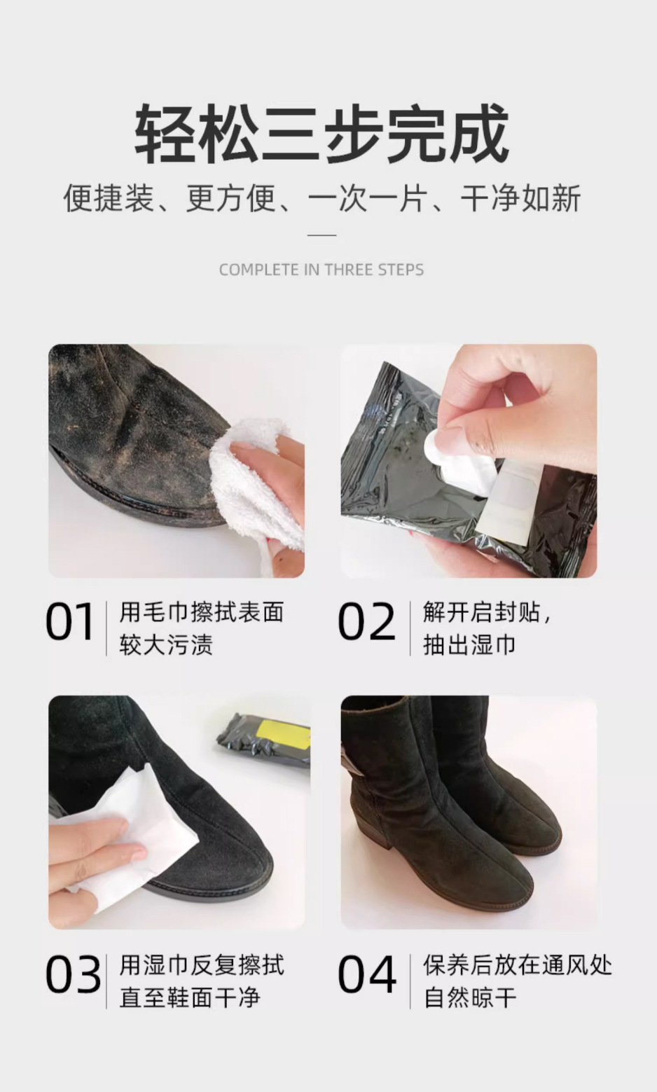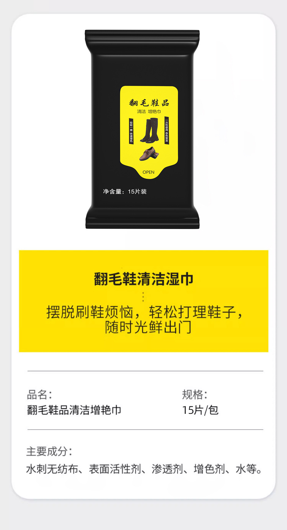 翻毛皮清洁湿巾麂皮绒面磨砂翻新增艳护理免洗擦鞋湿纸巾厂家直销 投诉