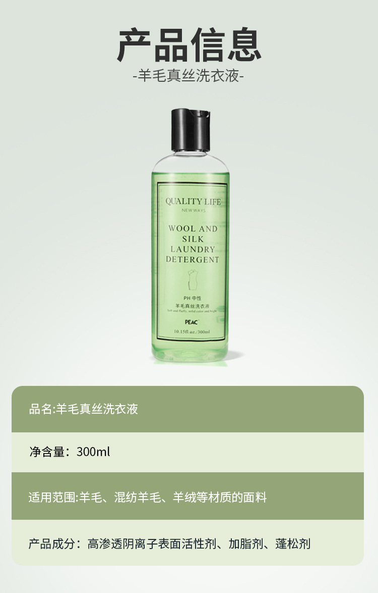羊绒洗涤剂羊毛真丝专用洗衣液柔软顺防缩水桑蚕丝衣服母婴可用
