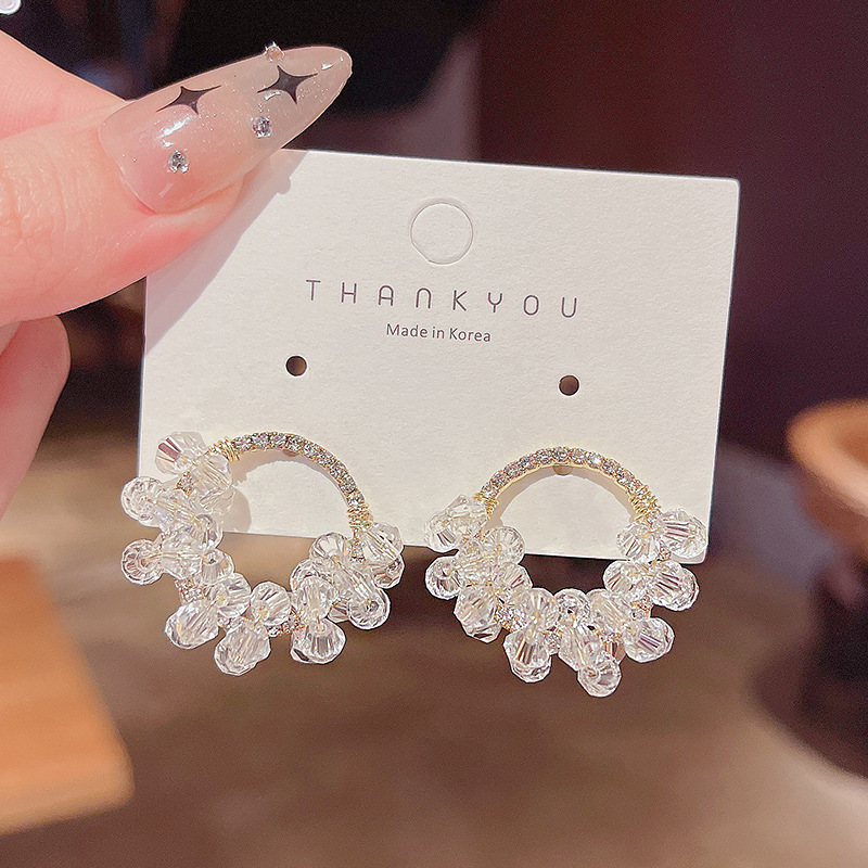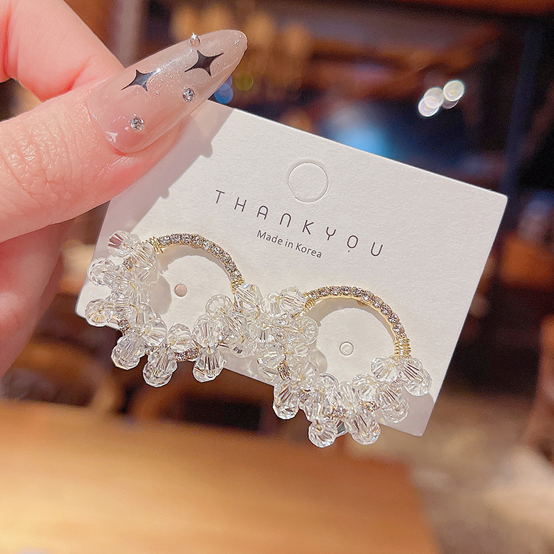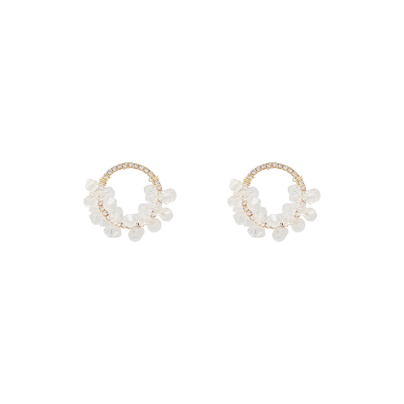S925银针韩版新款超仙耳环女编织水晶串珠气质几何形耳钉网红耳饰