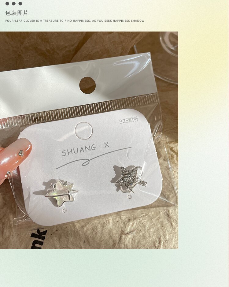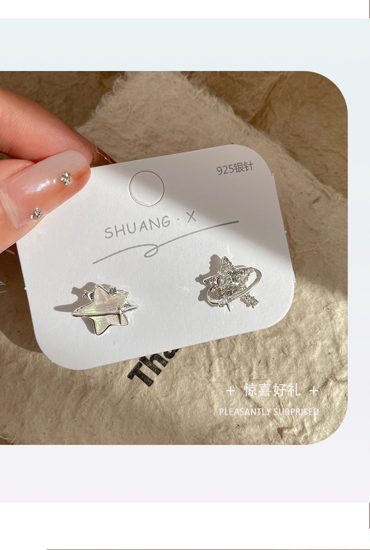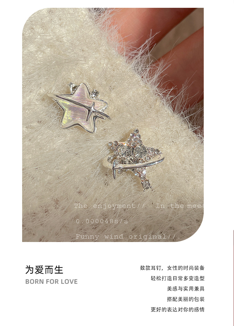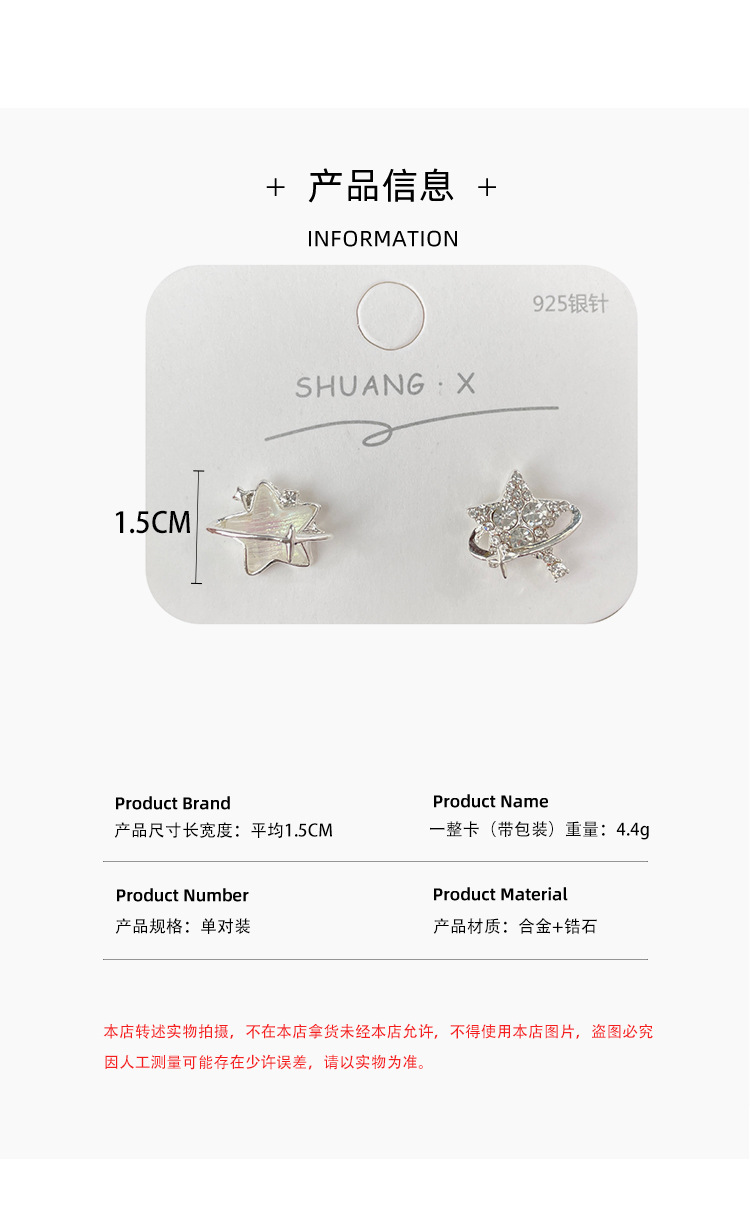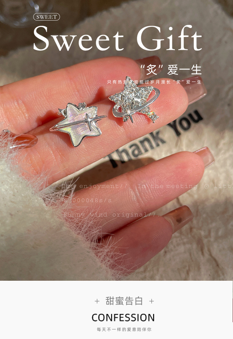 新款个性不对称带钻渐变星星耳钉女潮银针超闪小众精致设计感耳饰 投诉