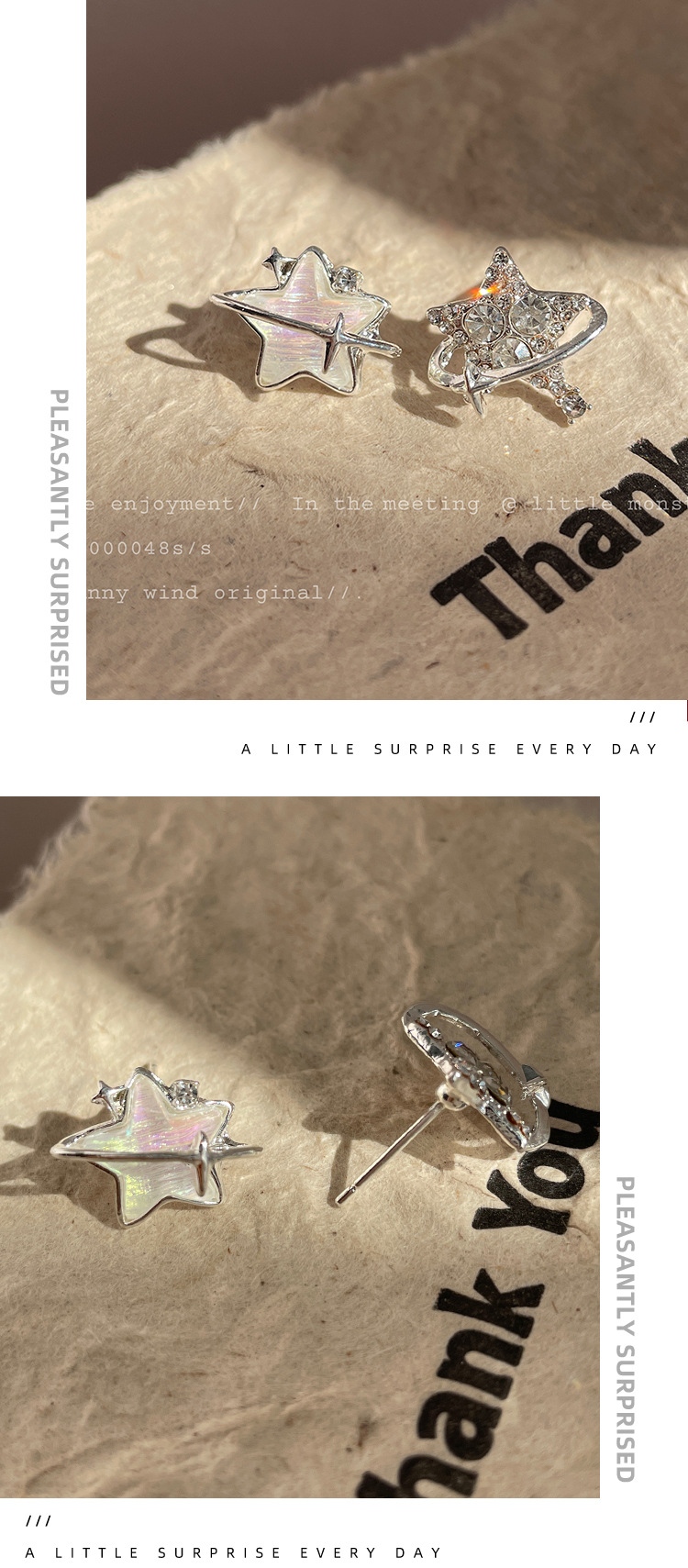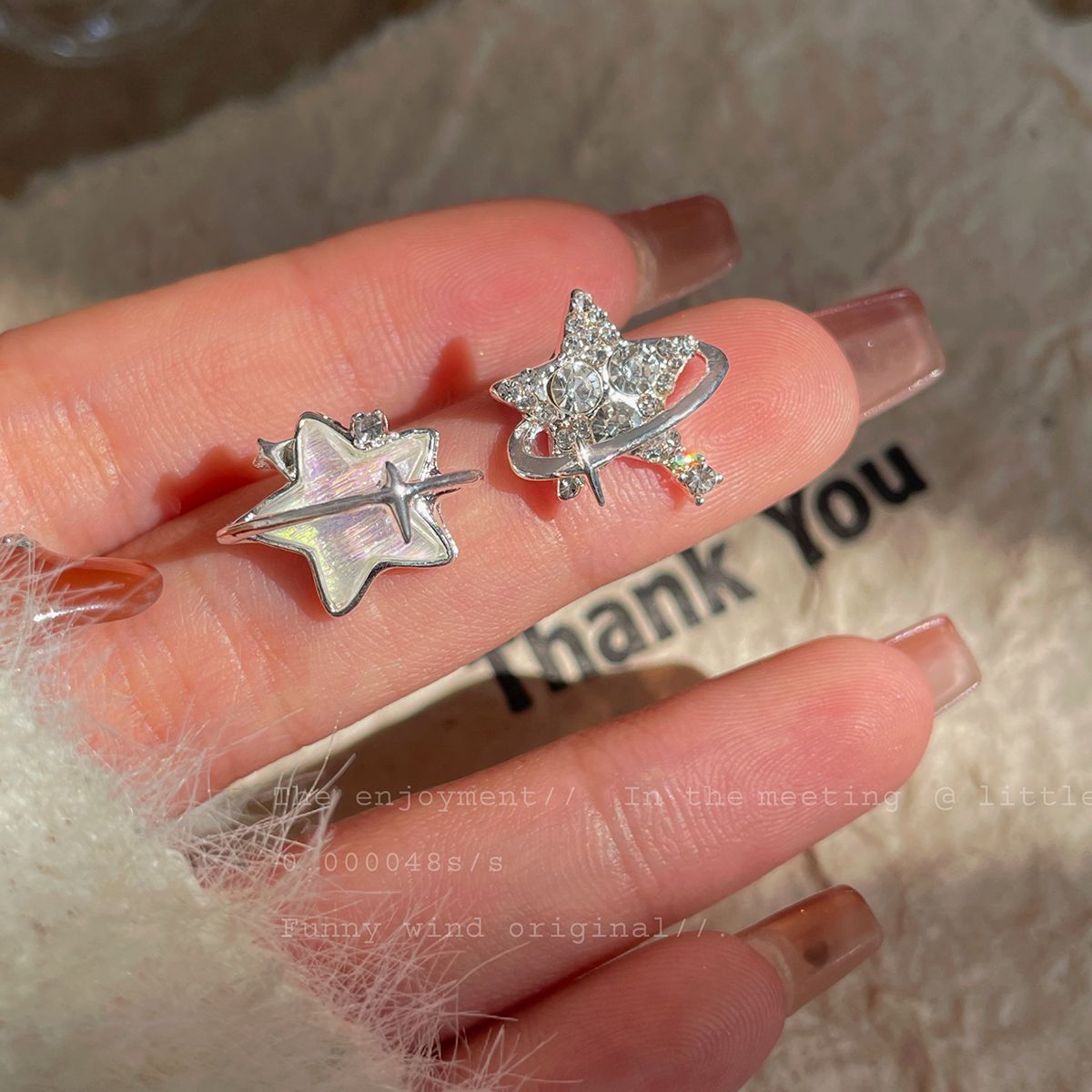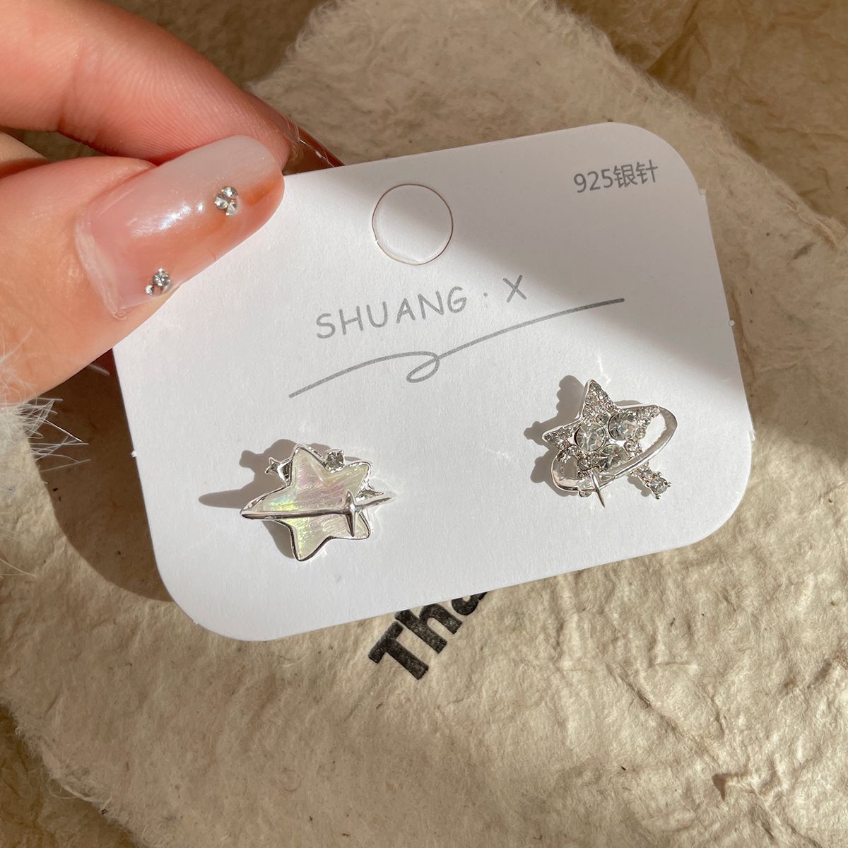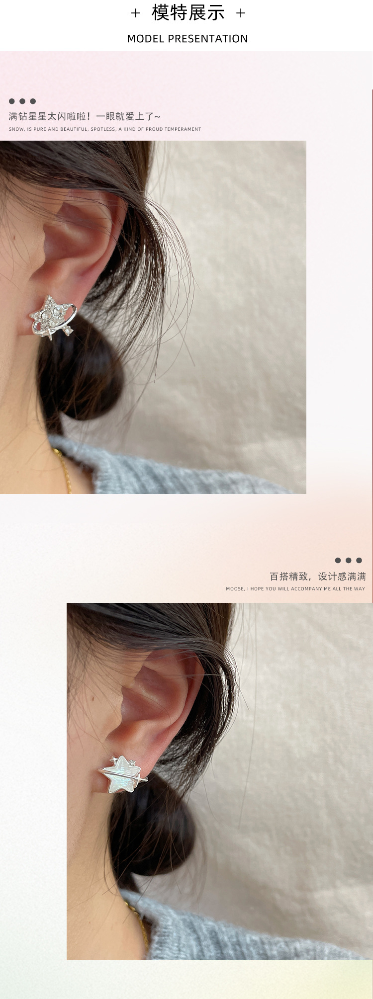 新款个性不对称带钻渐变星星耳钉女潮银针超闪小众精致设计感耳饰 投诉